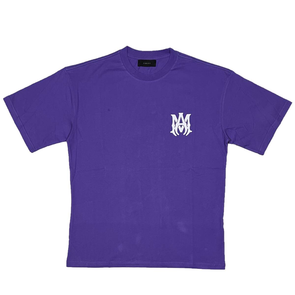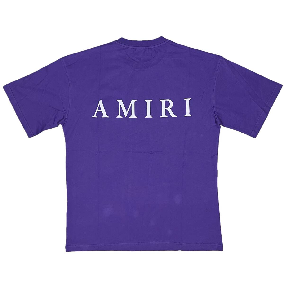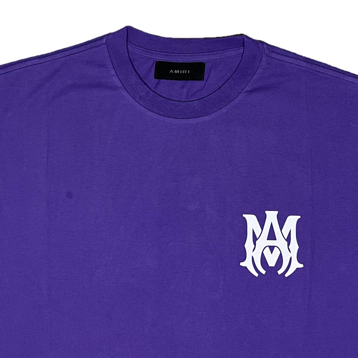 フロントにデザイナーMIKE AMIRIのイニシャル「M.A.」ロゴ、バックにも「AMIRI」とブランドロゴが入るTシャツです。