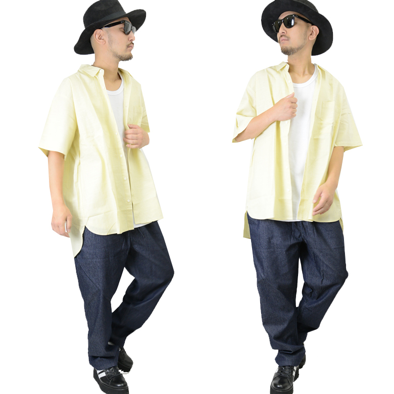 新作【ビックシルエットカスレ織シャンブレー半袖シャツ】の登場。