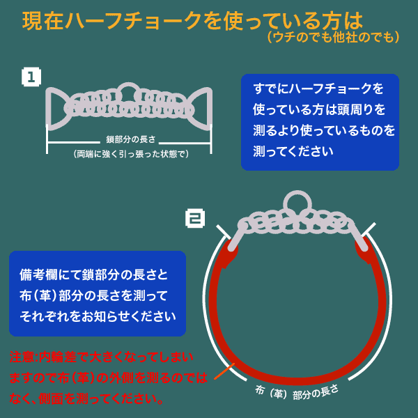 中形犬用の3cm幅のハーフチョークです。調節できますがだいたいこのサイズでお願いします