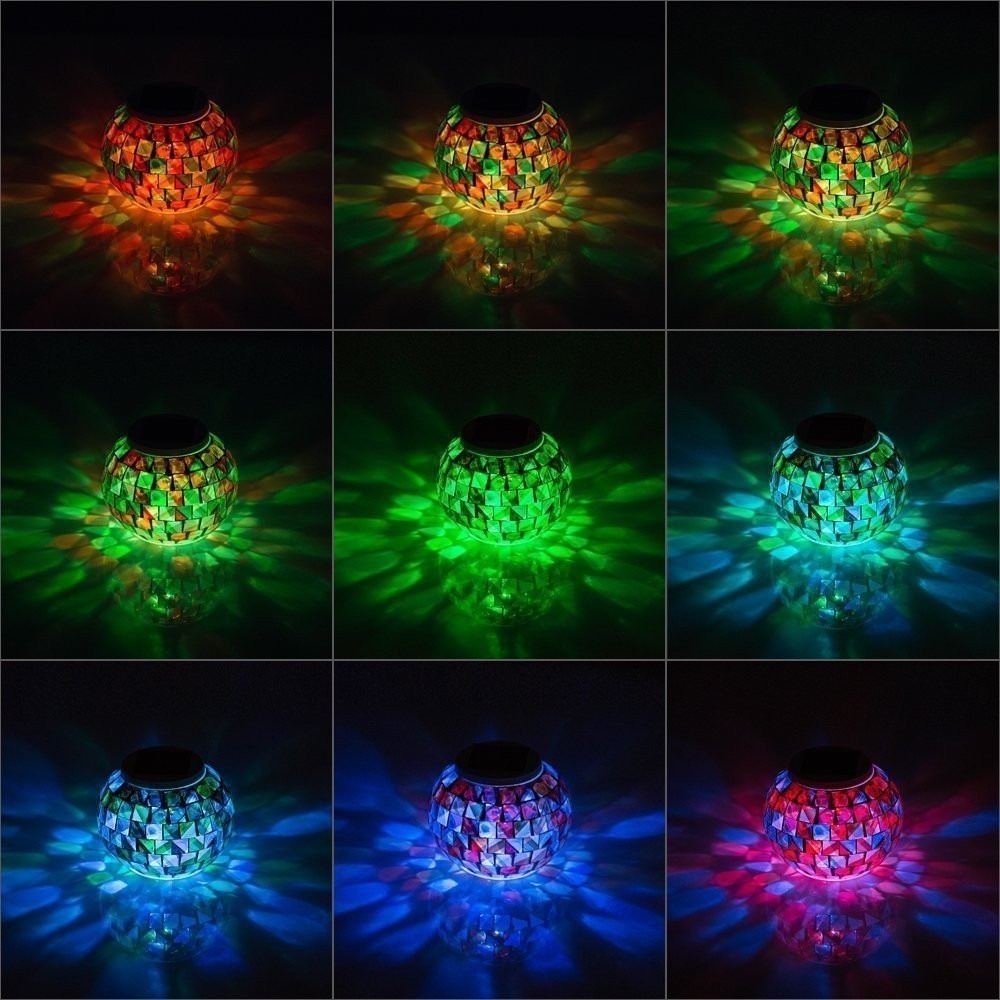 J258★ソーラー モザイク ガラスボール ガーデンライト 変色 太陽電池 テーブルランプ 屋外照明 インテリア ステンドグラス