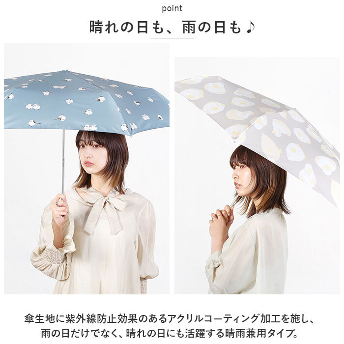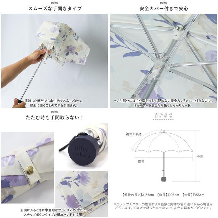 商品説明 | ・・コンパクトなのに、傘を開くとふわっと大きめ。「nifty colors」から、使いやすくて手放せない「NEW STANDARD MINI (親骨55cmタイプ)」が新登場。 ・【安心感のあるサイズ】 ・標準的なレディース折りたたみ傘よりも親骨を5cm長く設計。傘生地の表面積が約2割アップし、洋服の裾や荷物が濡れにくい安心のサイズ感。 ・【晴れの日も、雨の日も♪】 ・傘生地に紫外線防止効果のあるアクリルコーティング加工を施し、雨の日だけでなく、晴れの日にも活躍する晴雨兼用タイプ。 ・【UVカット80%以上】 ・UVカット率80%以上の傘生地が、日射しとともに降り注ぐ紫外線もブロック!紫外線が気になる女性の心強い味方♪(※傘生地の色味により、紫外線遮蔽率が異なります。濃色:約90%、淡色:約80%) ・【持ち運び、コンパクト】 ・雨や日射しをしっかりと防ぐ丈夫な構造なのに、重さ約190gの軽量設計!いつものカバンにちょこんと忍ばせて、持ち運びが楽ちん。(※傘袋を含む重量です。) ・【軽くて、しなやか】 ・スリムで軽量なアルミ素材に、グラスファイバーを組み合わせたハイブリッド構成の親骨パーツが強い風をしなやかに受け止めるヒミツ。 ・【スムーズな手開きタイプ】 ・混雑した場所でも傘生地をスムーズかつ、安全に開くことのできる手開き式。 ・【安全カバー付きで安心】 ・ハジキ部分には爪や指を挟む心配のない安全ろくろカバー付きなので、ネイルアートをした指先もしっかりガード。 ・【たたむ時も手間取らない!】 ・玄関に入るときに傘生地がサッとまとめやすい、スナップボタンタイプの留めバンドを採用。 ・【コロンと小さなハンドル】 ・「nifty colors」のロゴ刻印入りの手元ハンドルは、コンパクトに持ち運べるようコロンと小さめに。付属のケースに入れればかさばらない! ・【心華やぐテキスタイル】 ・水彩画のように淡く優しいフローラル柄から、道行く人が振り返るほんわかアニマルデザインまで、バラエティ豊かなカラーラインナップ。雨空に大人可愛さがパッと花咲く、自分だけの1本が見つかる♪ |