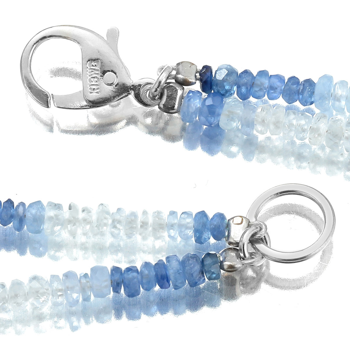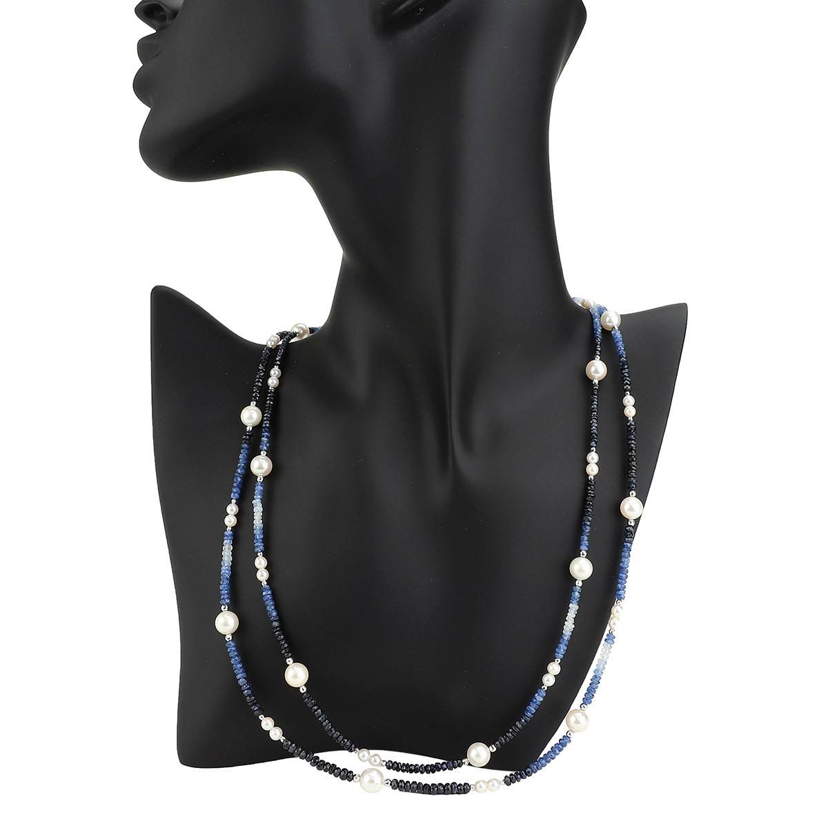 優しい輝きをもつマットなサファイアビーズとテリの美しいアコヤ真珠を組み合わせたネックレス。濃紺からライトブルー、ホワイトへのグラデーションにステーションスタイルでパールを添えてアクセントに。ラフにカットされたサファイアと天然パールがナチュラルな美しさを完成させています。