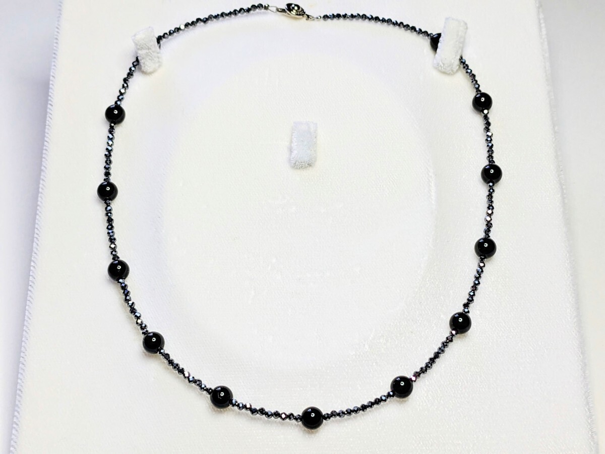 高純度テラヘルツと天然モリオンを使用したネックレスです。 高純度テラヘルツ カット(珪素:99%以上) 約2mm キラキラ輝きます 天然モリオン(黒水晶:処理石) 約6mm 留金 : ホック式 真鍮製 メッキ コーティングステンレスワイヤー使用 長さ : 約40cm ※内周の延長承ります。テラヘルツとモリオンを追加します。 約5cm延長ごと追加料金350円になります。 約5cm延長(長さ:約45cm) 350円 約10cm延長(長さ:約50cm) 700円 約15cm延長(長さ:約55cm) 1050円 約20cm延長(長さ:約60cm) 1400円 ※定形郵便での発送をご希望の場合、送料(140円)+追加料金を記載しておりますので、ご希望の長さの追加料金を選択して、かんたん決済のお手続きをお願い致します。 ※ゆうパケットポストまたは宅急便での発送をご希望の場合、別途延長料金お支払い専用出品をさせていだきます。 落札後、「お届け情報、お支払い情報、発送方法」を入力する前に、ゆうパケットポストまたは宅急便での発送をご希望と取引メッセージでお知らせいただければ、先にこちらからお送りする延長料金お支払い専用出品を落札していただき、「まとめ取り引きを依頼」していただければ、1回のかんたん決済のお手続きで完了で出来ます。 テラヘルツ(珪素:99%以上) 名前の由来でもあるテラヘルツ波の周波数は、1兆Hzから100兆Hzの間にあり、その波長は3μm~1mm(1,000μm)の間にあります。テラヘルツ波は光と電波の両方の性質を持っており、直進性と透過性と浸透性を持っています。 テラヘルツ波は自然界のすべての物質や生命が自分自身で放射されていると言われています。 人間では、一番テラヘルツ波の量が多いのが、生まれたばかりの赤ちゃんで、加齢と共に減少していくそうです。また、病気の人よりも健康な人の方がテラヘルツ波の量が多いとも言われてます。 血行促進(凝り、冷え性などの改善)、免疫力・自然治癒力の向上、睡眠障害の改善、細胞の活性化、新陳代謝の向上に効果があると言われています。 違うタイプのネックレスやブレスレットも出品しております。 「出品者のその他のオークションを見る」からご覧下さい。 画像と実物との色合いが多少違う事があります。 画像はサンプルですが、同品質の商品をお送りします。  |      |||
