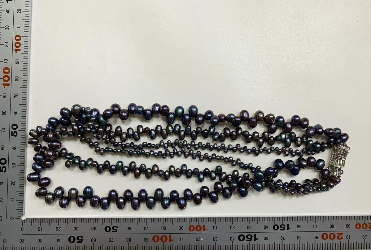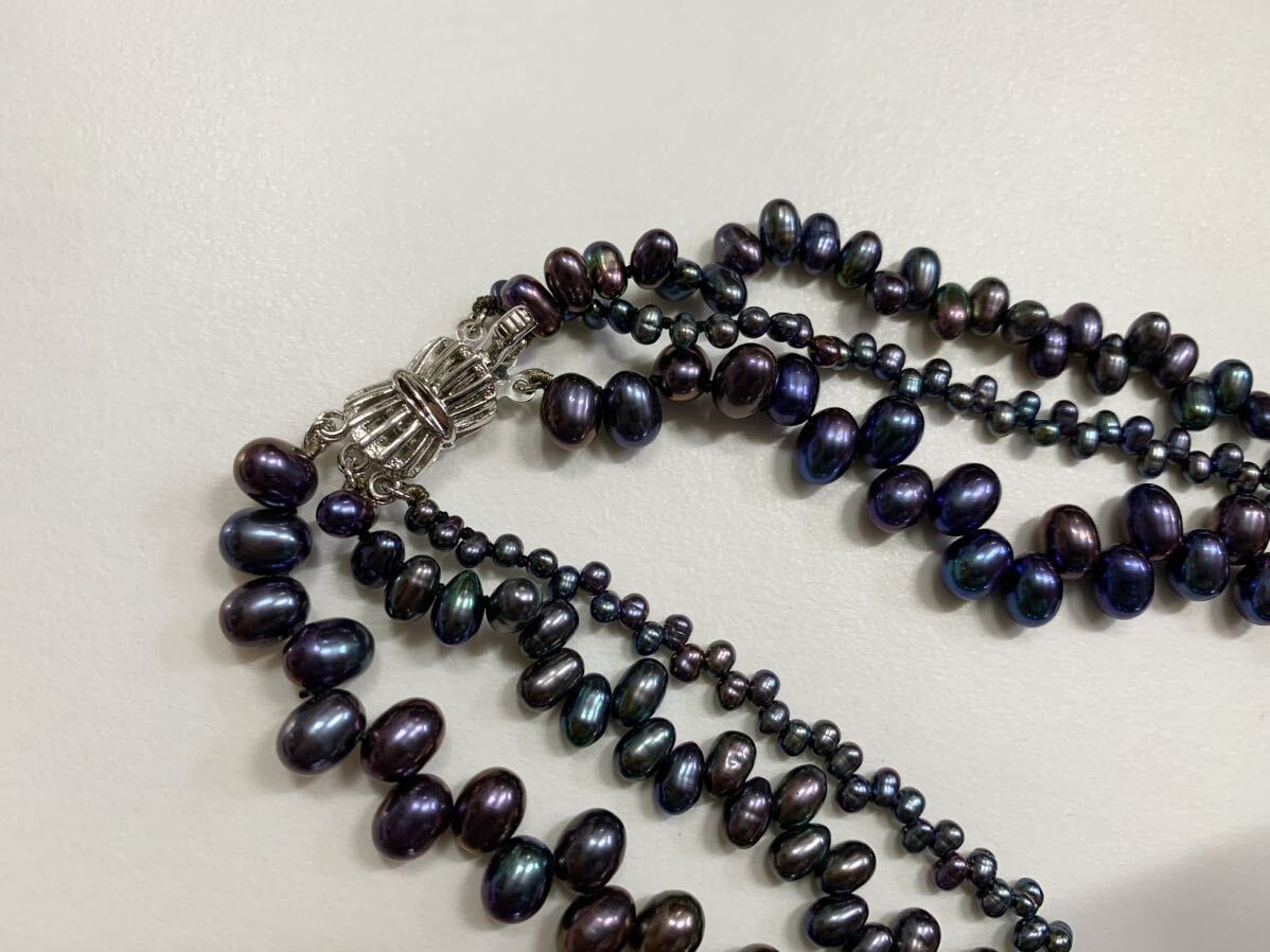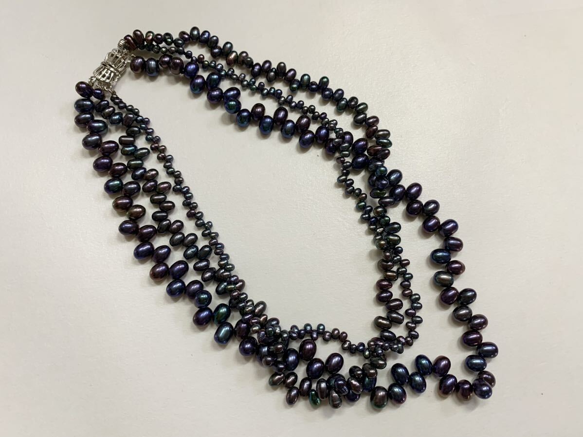 美品 本真珠 黒 パール 希少 豪華 三連 ネックレス 留め具 シルバー SV 925 黒真珠 真珠 アクセサリー レディース ジュエリー 52.9g