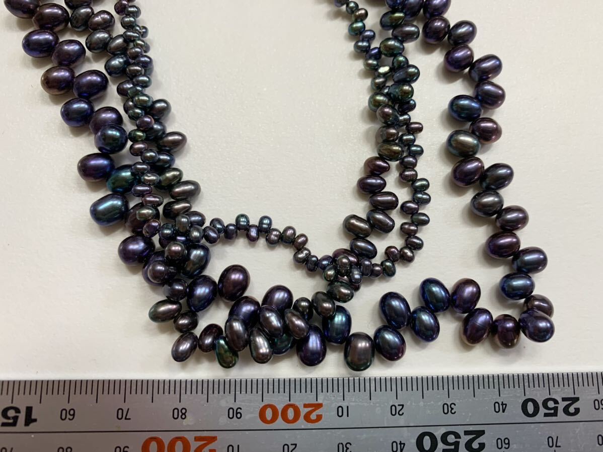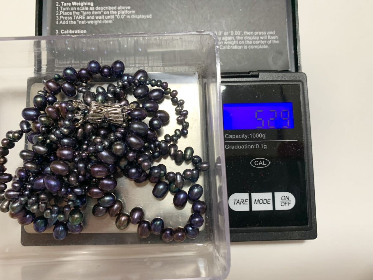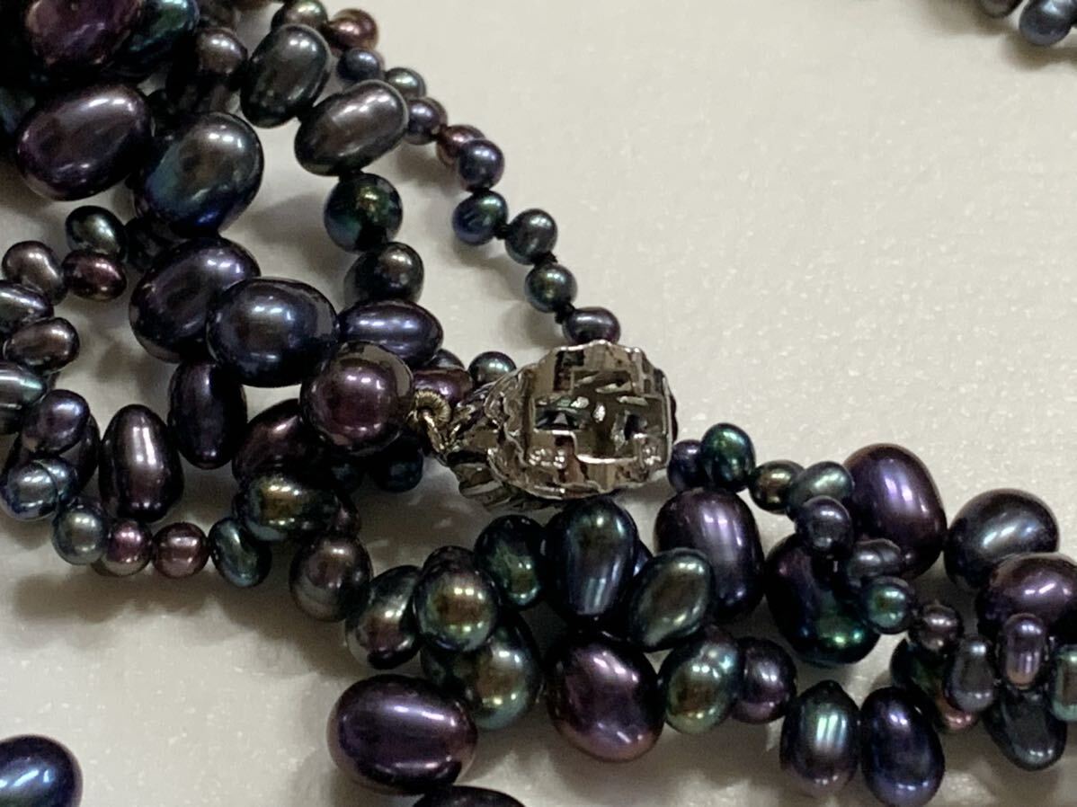 美品 本真珠 黒 パール 希少 豪華 三連 ネックレス 留め具 シルバー SV 925 黒真珠 真珠 アクセサリー レディース ジュエリー 52.9g