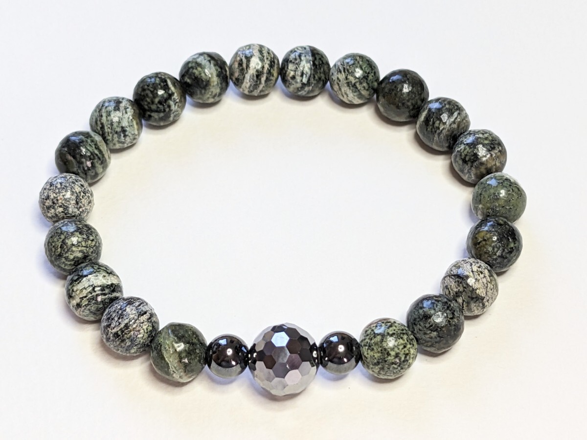 高純度テラヘルツと磁気ヘマタイトと天然石を使ったブレスレットです | |||