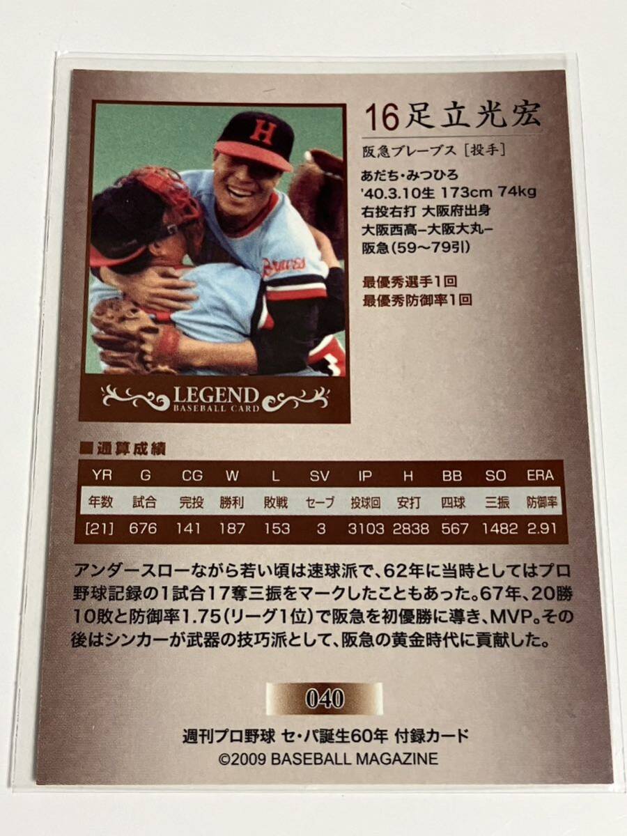 阪急 足立光宏 40 週刊プロ野球 セパ誕生60周年 付録カード BBM2009