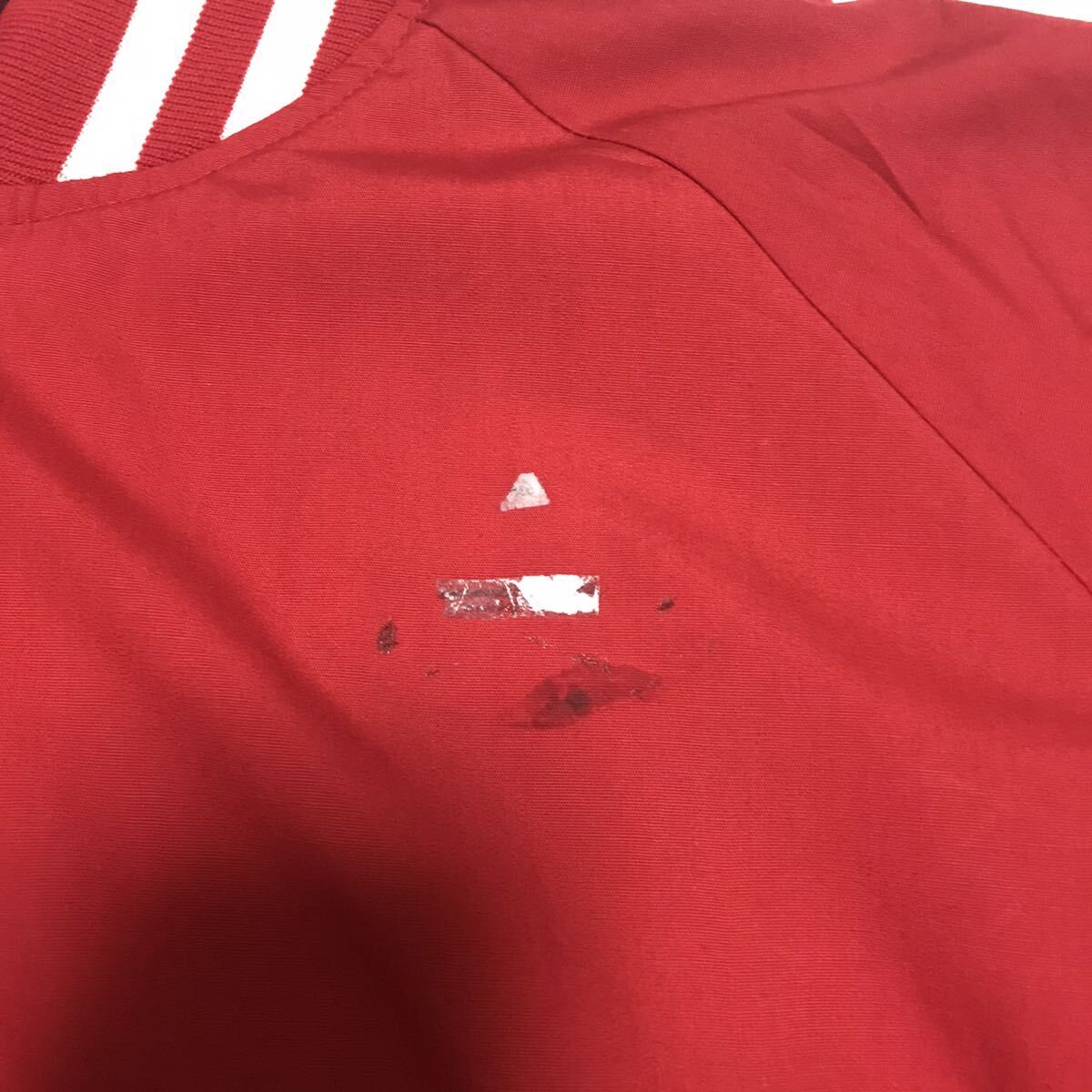 ワッペンかと思われますが、剥がれた跡があります。古いものですので、生地のダメージもありますので、上から新たなワッペンを貼るのも良いと思います。