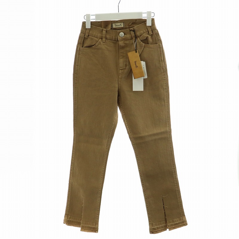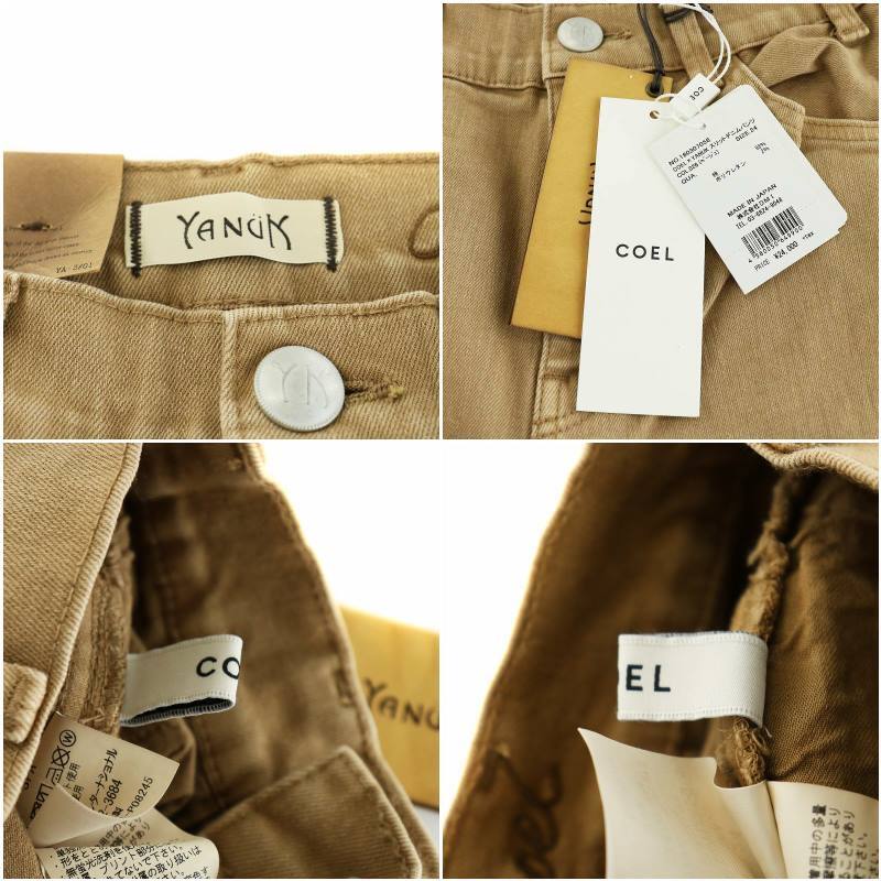 未使用品 ヤヌーク YANUK × コエル COEL スリットデニムパンツ ジーンズ ジーパン ジッパーフライ 24 XS ベージュ 180307056