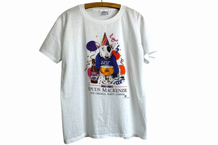 デッドストック80sビンテージBUDLIGHTバドライトバド犬プリントTシャツXL白ホワイトアメカジストリート企業物ビールバドワイザーh23911
