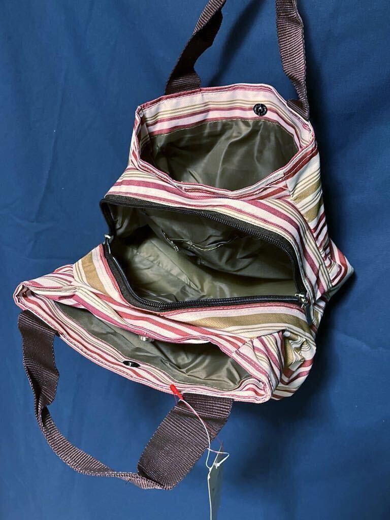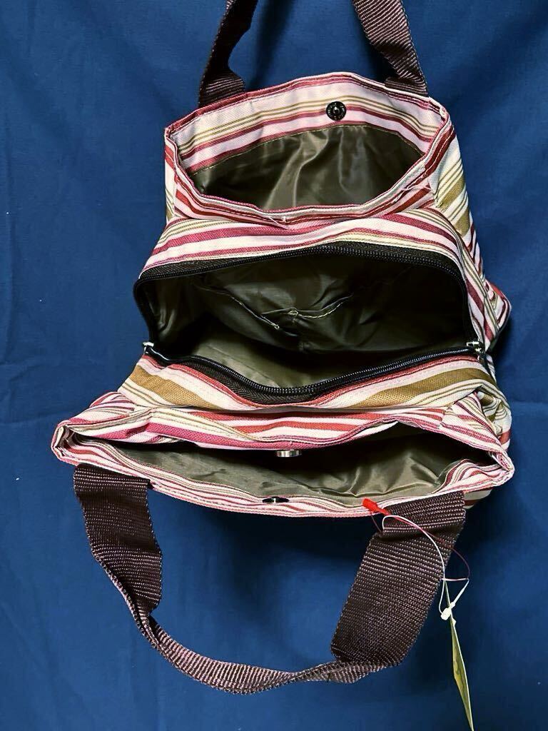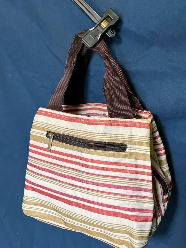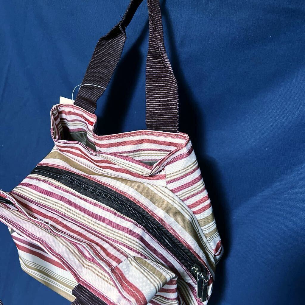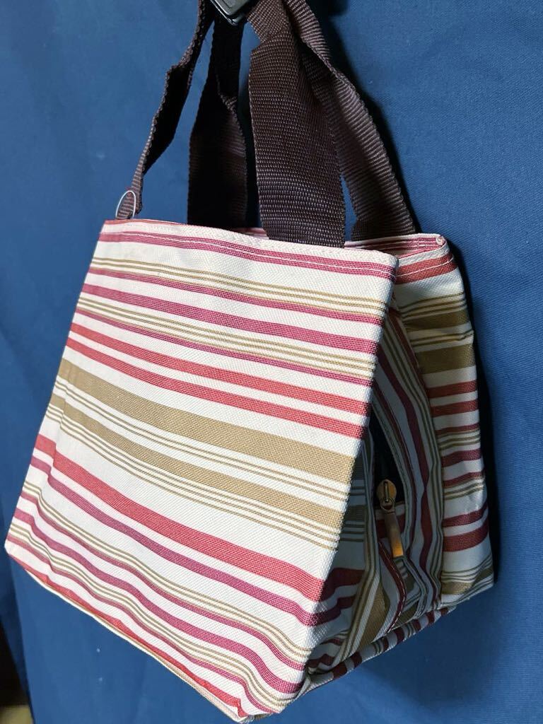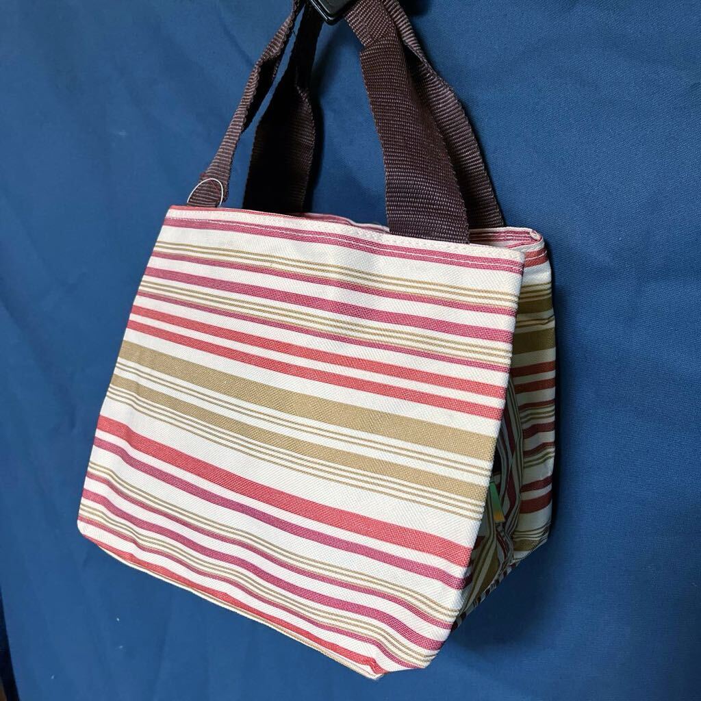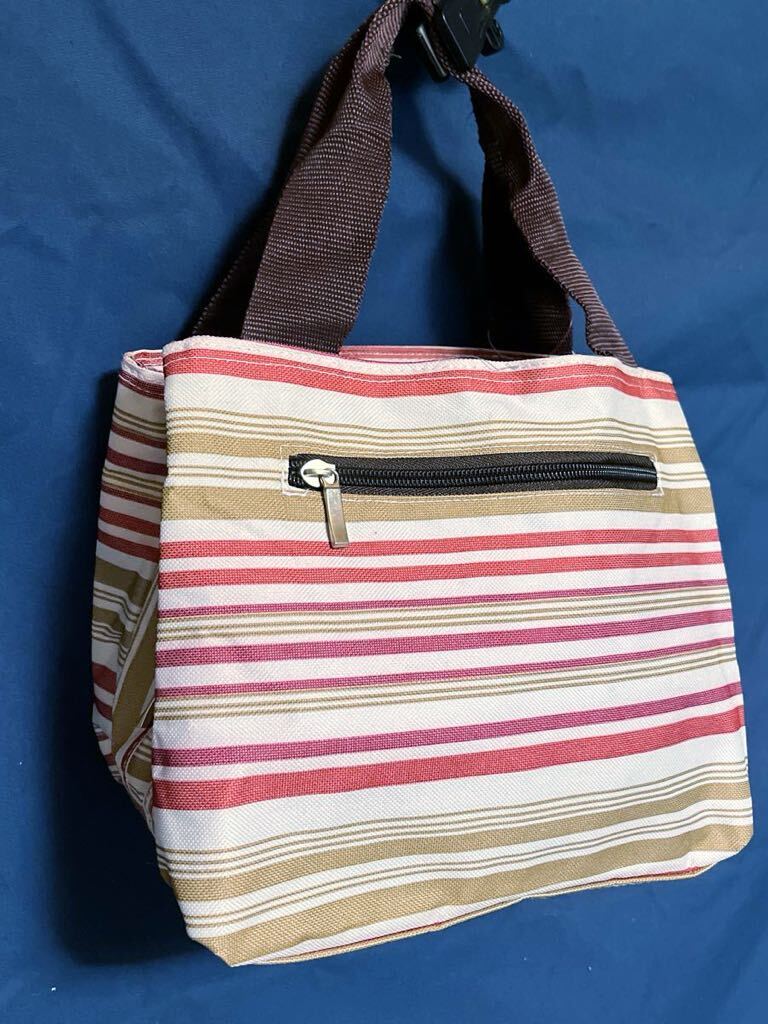 新品タグ付▼partner トートバッグ ハンドバッグ トライプ ランチバッグ お弁当バッグ ピンク 未使用 開閉チャック付 前後に大ポケット付