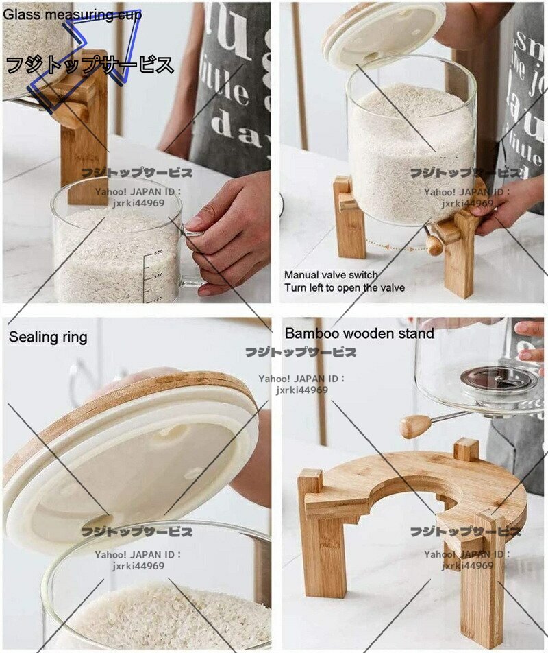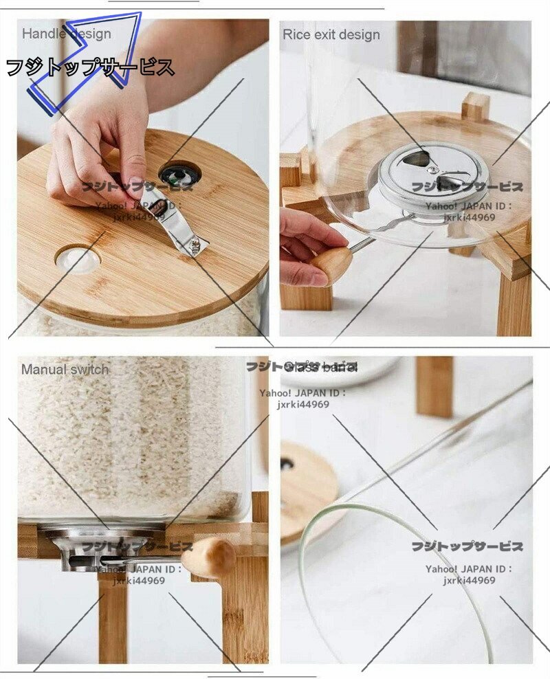 実用★ ふた付き収納ジャー ガラスシリアルディスペンサー収納ジャーセット気密収納容器キッチン収納容器 5L F1863