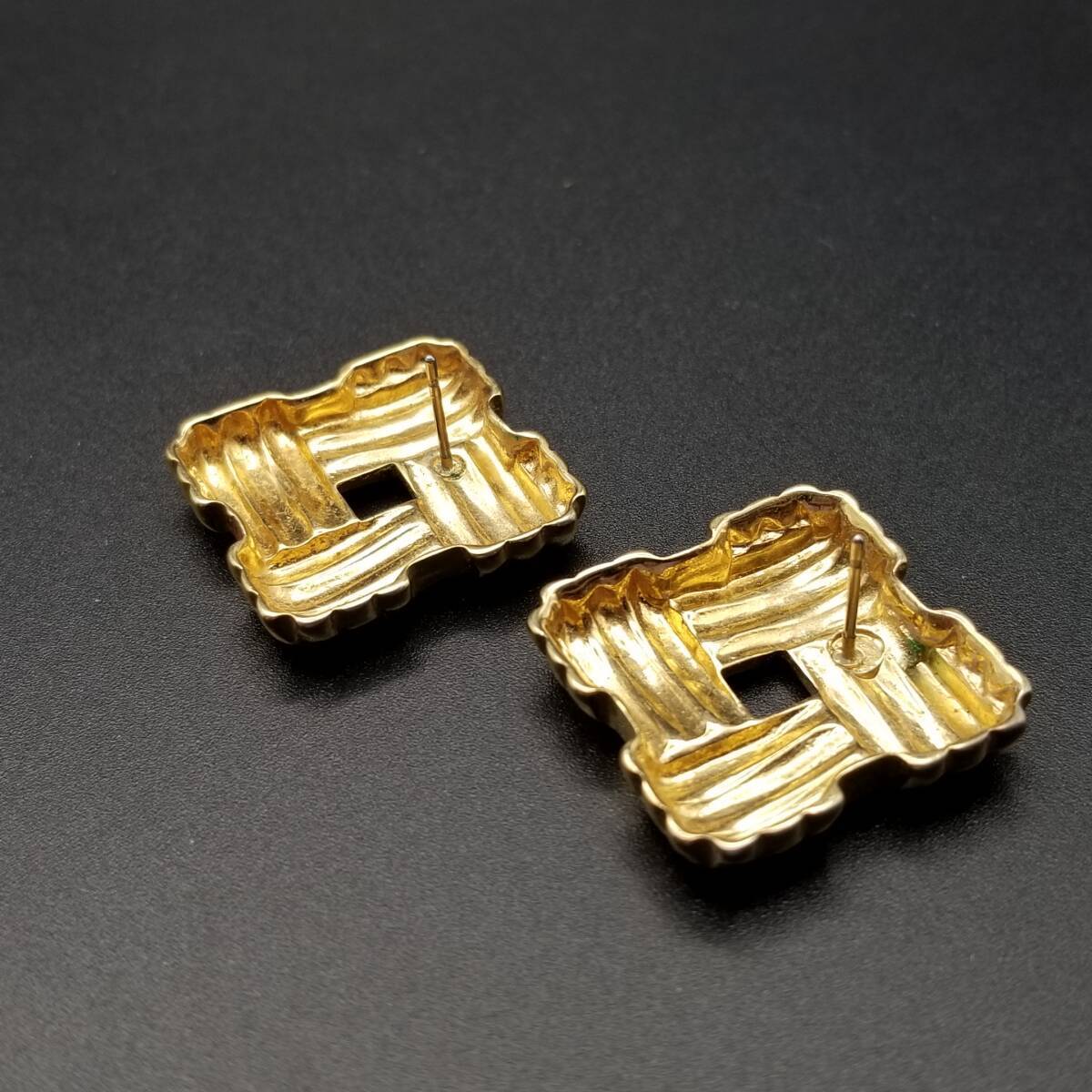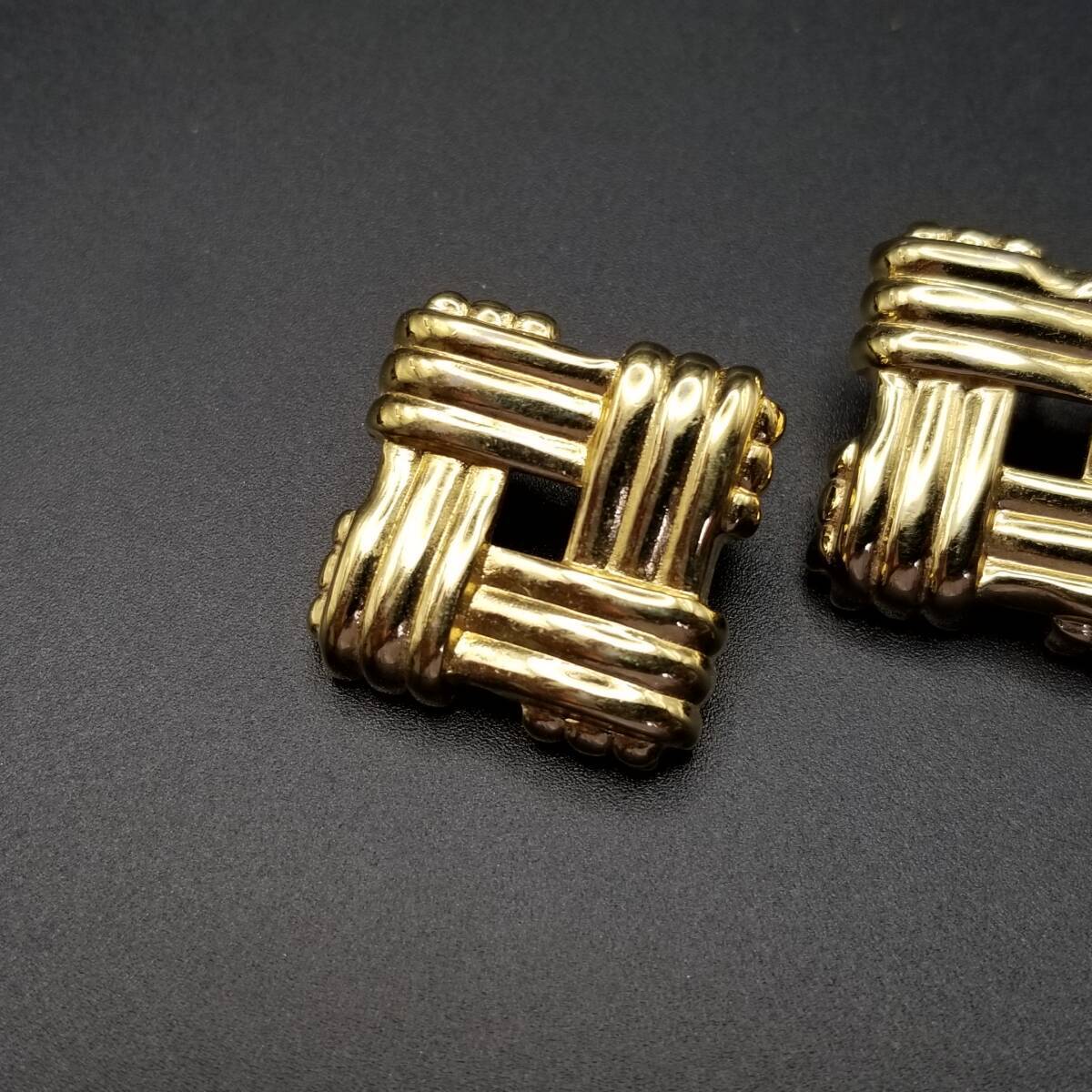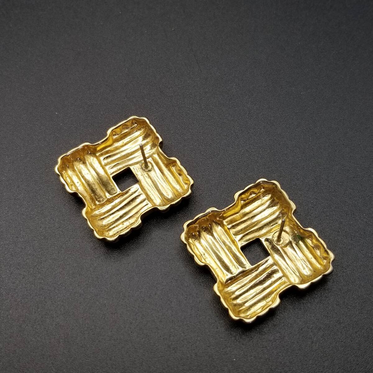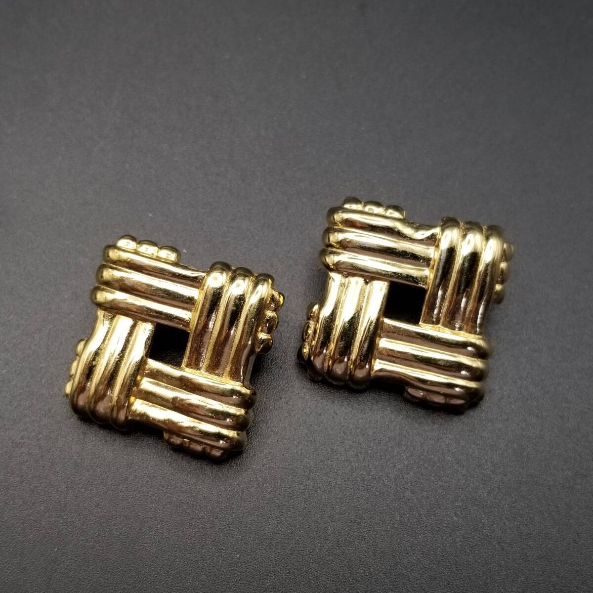 スクエアフレーム クロスロープ ヴィンテージ スタッドピアス ゴールドトーン 上品 エレガント シンプル Y16-R