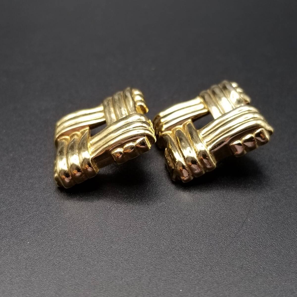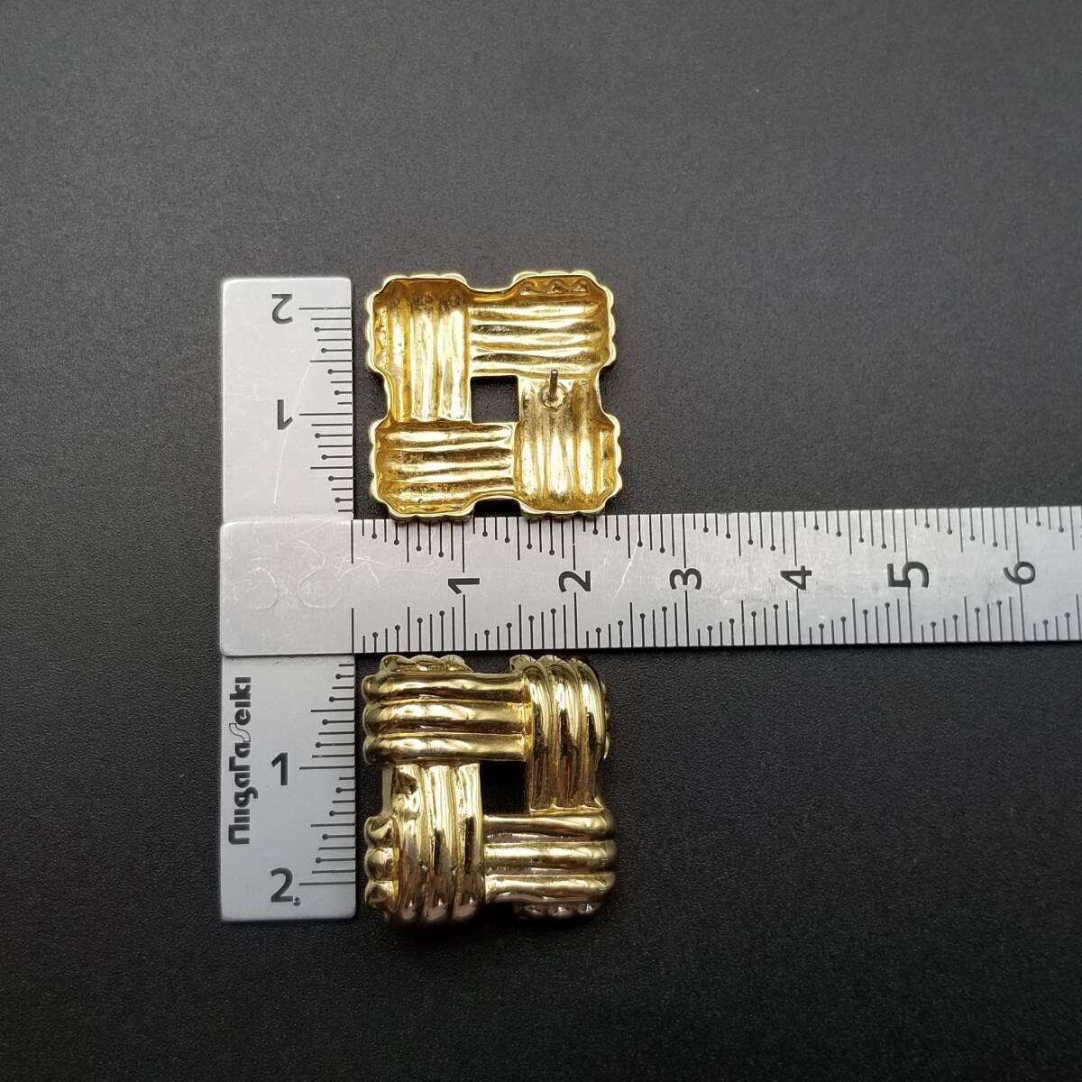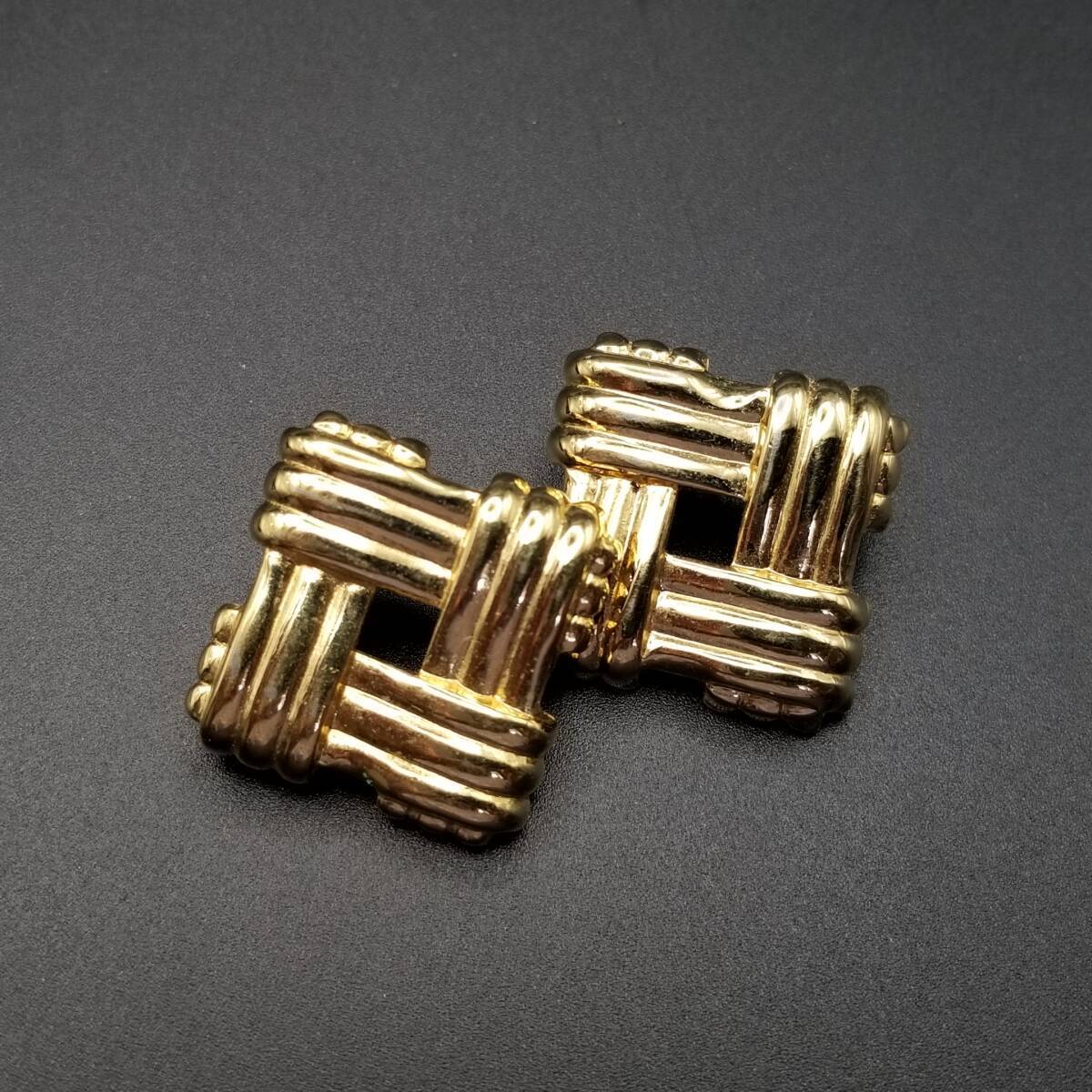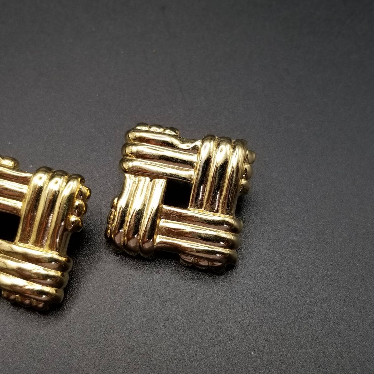 スクエアフレーム クロスロープ ヴィンテージ スタッドピアス ゴールドトーン 上品 エレガント シンプル Y16-R