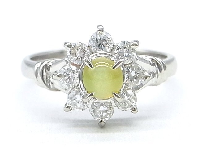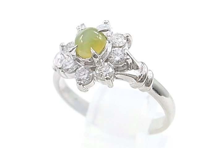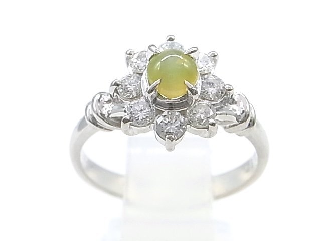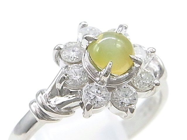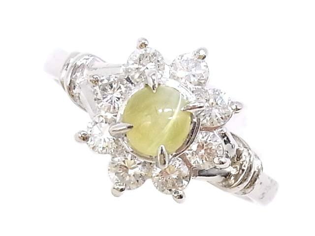 g17821 Pt900 クリソベリルキャッツアイ0.55ct D0.54ct リング USED 美品 5.8g #13 ソーティング付