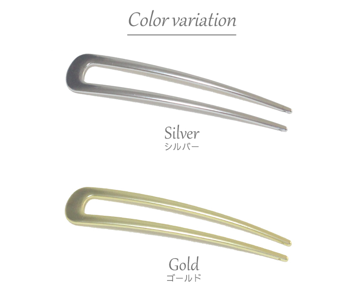商品説明 | メタリックU字かんざし。 お団子ヘアや、まとめ髪にサッと刺すだけで華やかな印象に♪ 色違いで2つ付けや、他のアクセサリーと重ね付けしてもオシャレです☆ 和装にはもちん、シンプルなデザインですのでデイリーアクセとしても使えますので、 幅広く活躍してくれます。 |