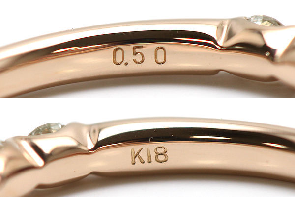 | コメント | 美しい輝きのダイヤモンドが半周埋め込まれたハーフエタニティリング★ お手元を華やかかつ上品に飾ってくれます♪ K18PGという素材を使っておりますので、地金積立・ゴールド資産としてもオススメ! こちらは未使用に近い、キレイな状態です(中古品により若干の小キズはございます)。 この機会に是非いかがでしょうか? |