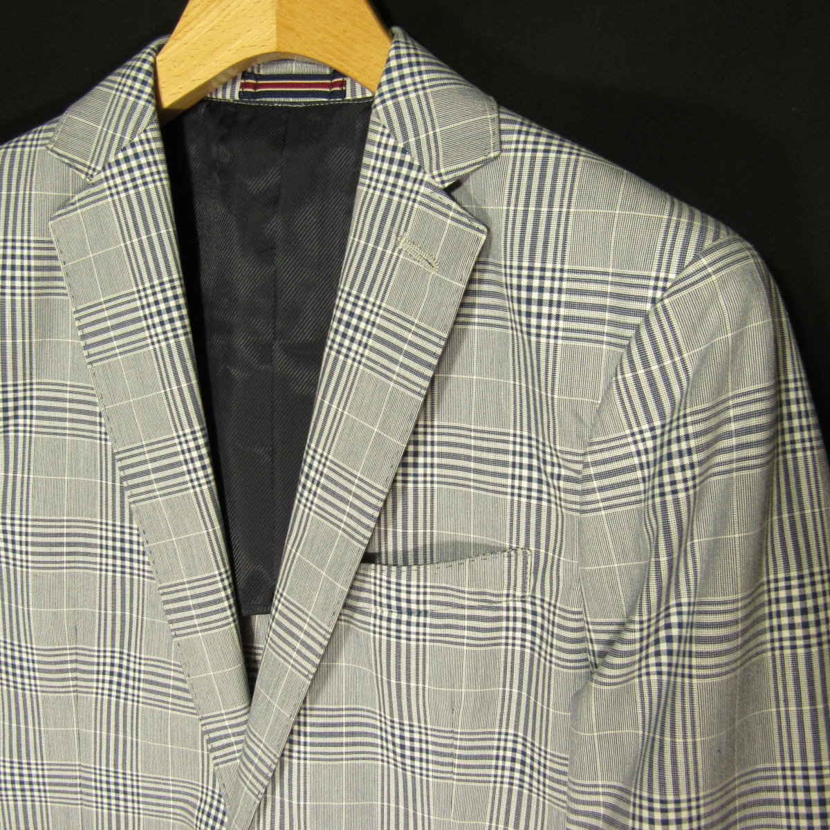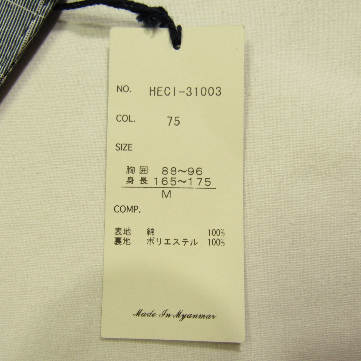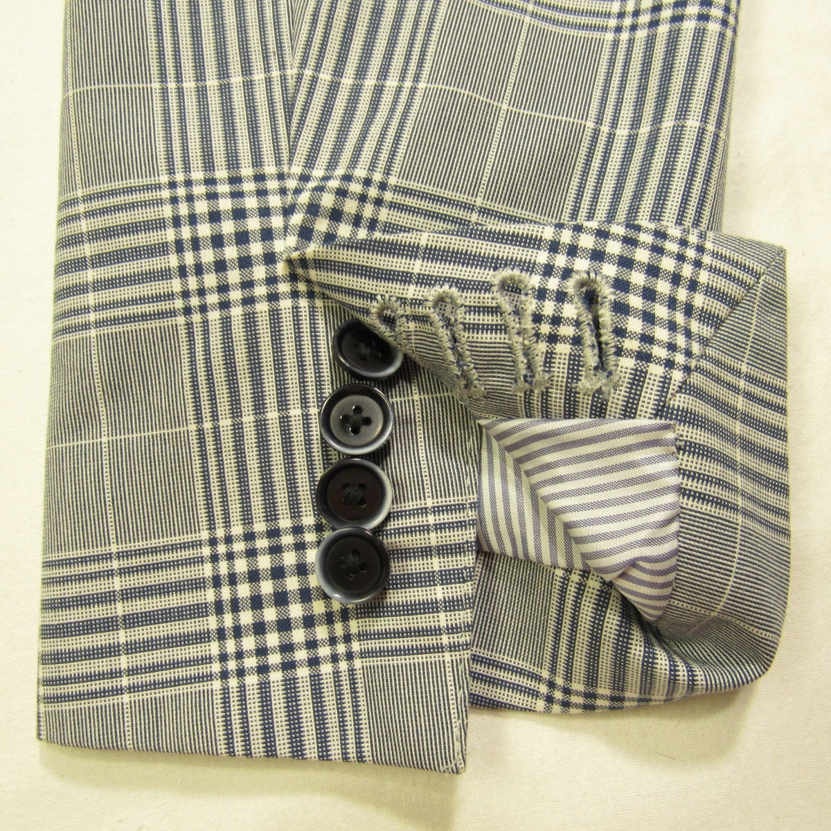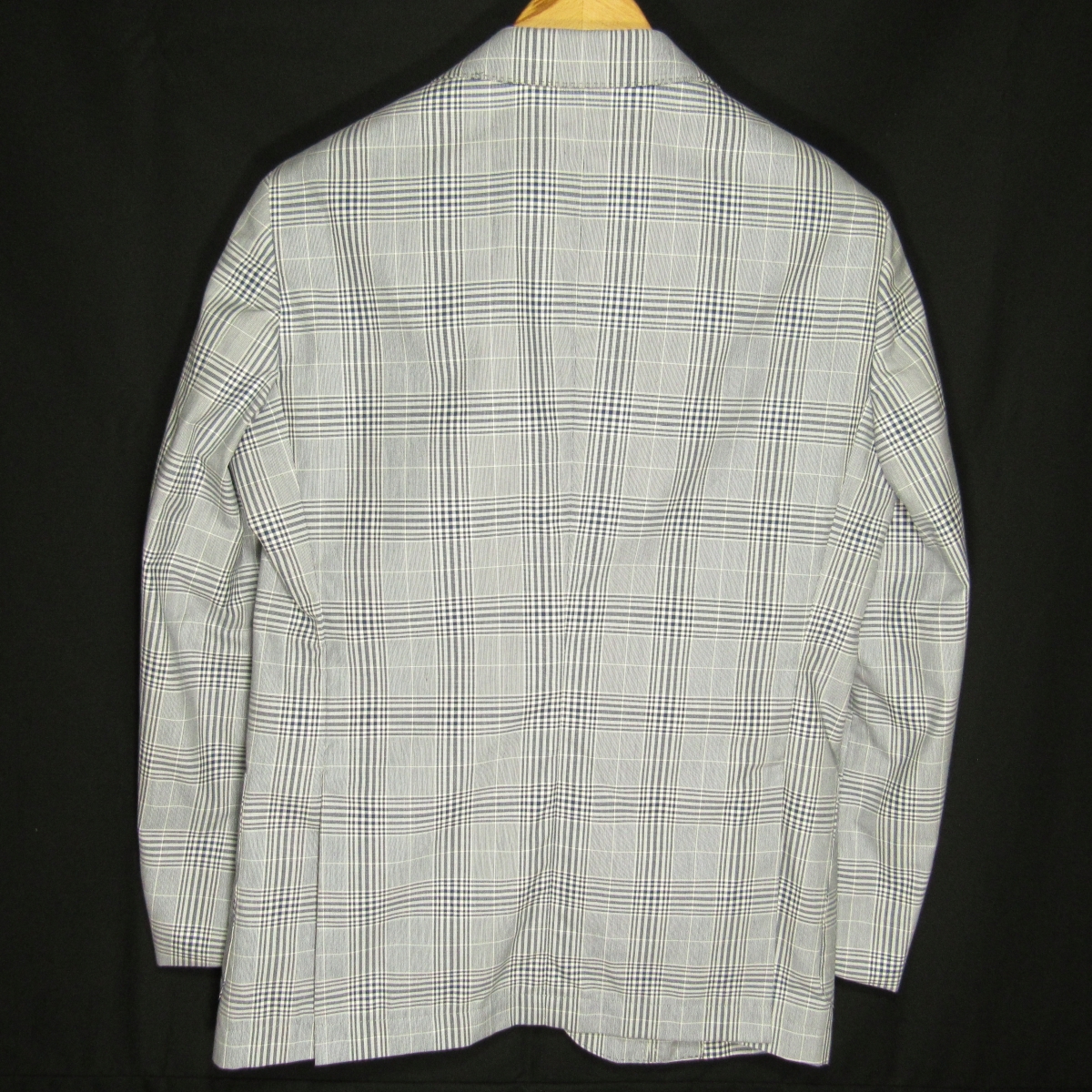 Mサイズ表記ですが、小さめのつくりだと思いますのでSサイズ程度として出品させていただきました。 記載の実寸サイズをご参考にしてください。 老舗紳士服店「タカキュー」のオリジナルブランド「MALE & Co.」 生地はイタリアの高級服地の生地ブランド「ANGELICO」社製の生地を使用しております。 サラリとした薄手コットン素材の春夏向けの素材です。 裏地は背抜きで、肩にはパッドを入れずに芯地のみを使用した軽快な仕立てとなっております。 胸ポケットの中の生地を出してチーフのようにしてもよいかもしれません。 メンズ・コットン・チェック・テーラードジャケット/春夏 型番:HECI-31003 シングル2つボタン/サイドベンツ/裏地-背抜き/大見返し/肩にはパッドを入れずに芯地のみを使用/腰パッチポケット/袖口本切羽4つキスボタン |