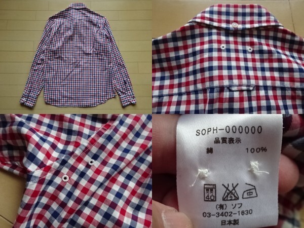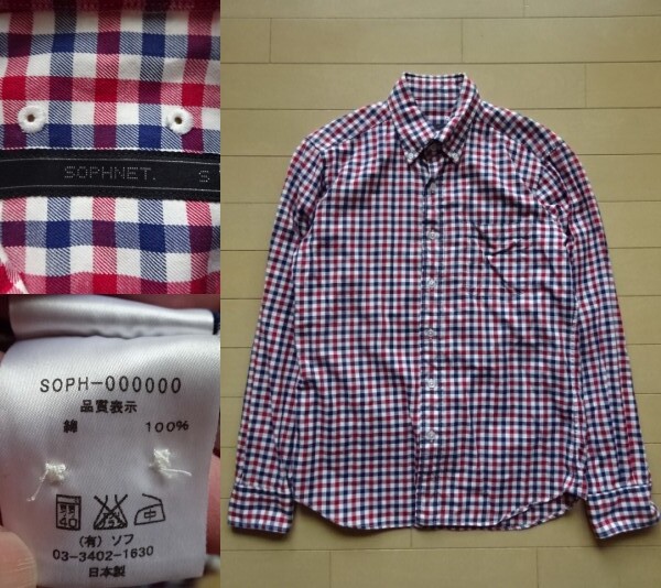 【SOPHNET.】長袖 ギンガムチェックシャツ レッド×ネイビー×ホワイト SIZE:SMALL (ソフネット,FCRB,uniformexperiment)