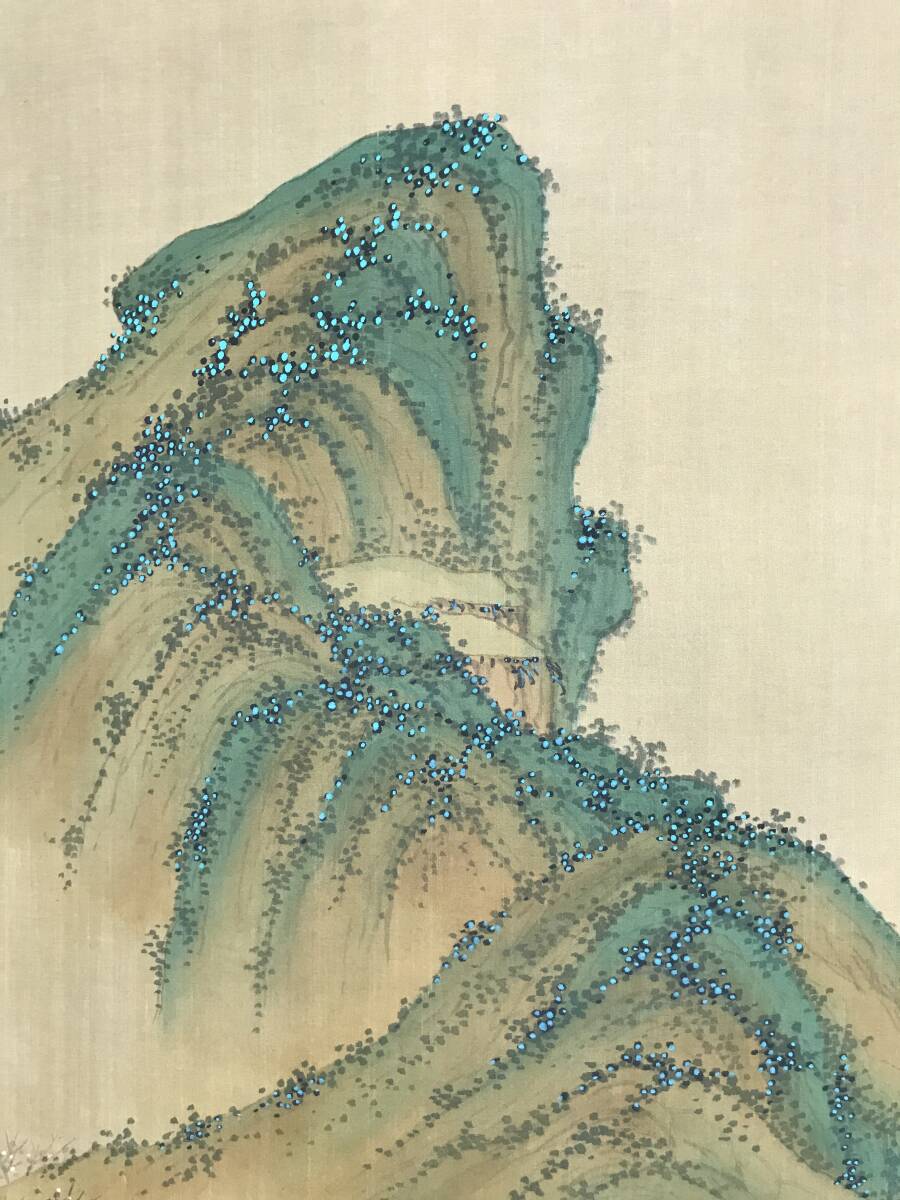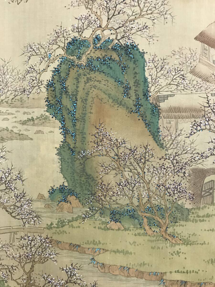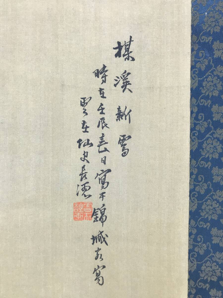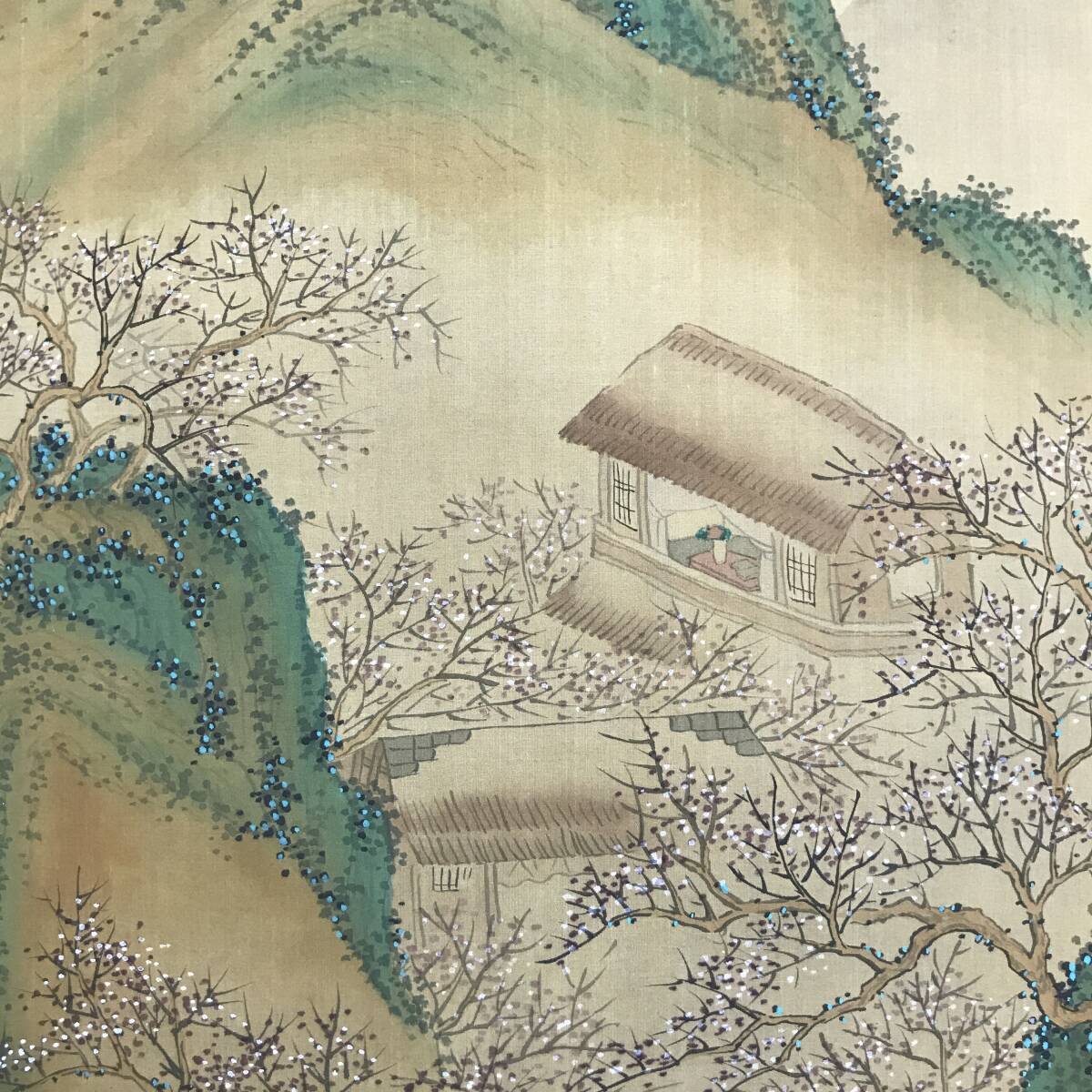 真作/長坂雲在/青緑山水人物画賛/梅花山水図/春景山水図/掛軸☆宝船☆AF-982