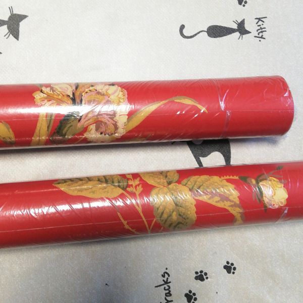 アメリカのメーカー「Antonina Vella Wallpaper」の、赤地に花柄のアンティーク調壁紙2本セットです。