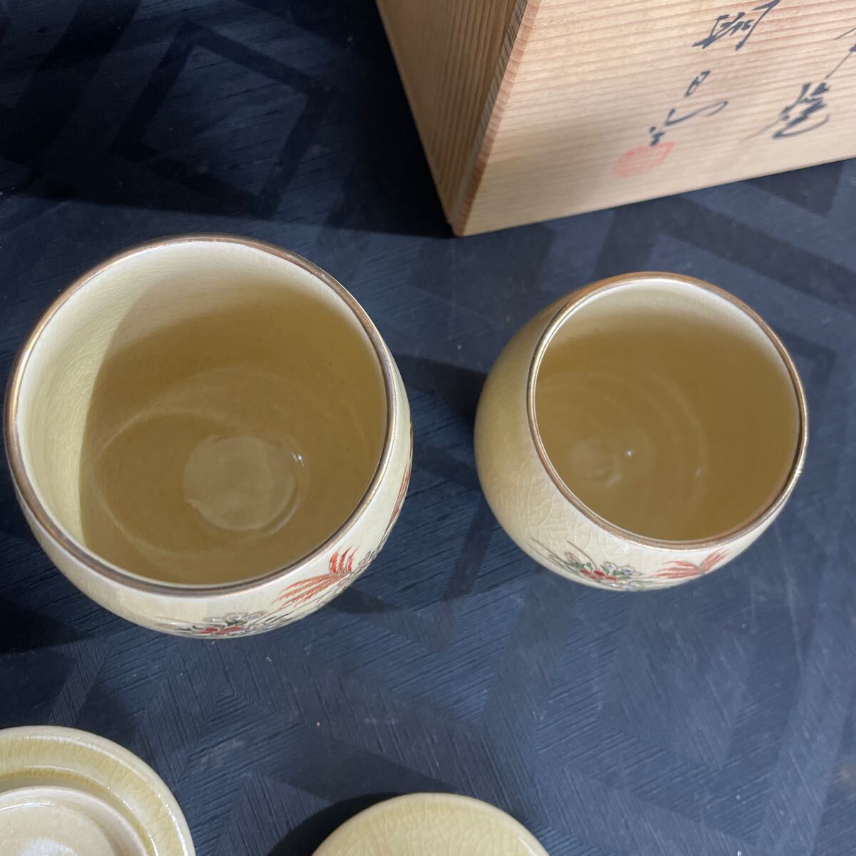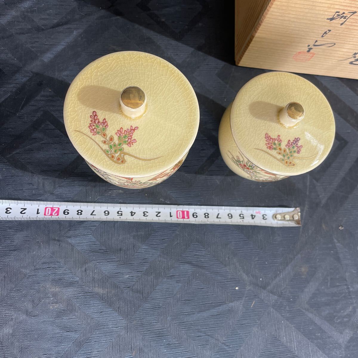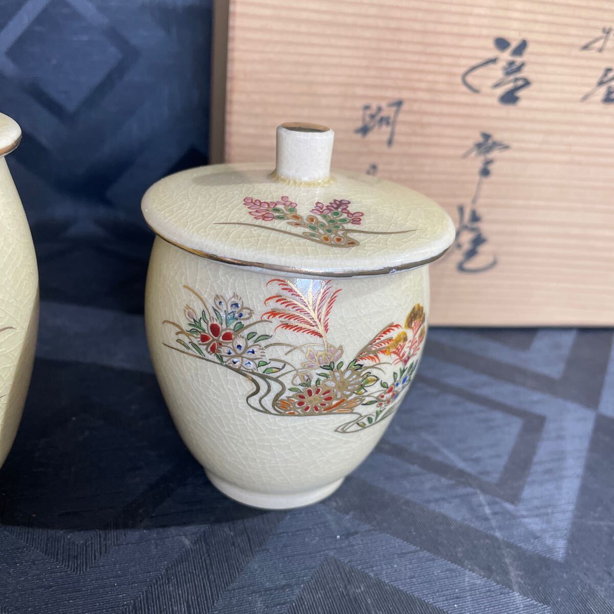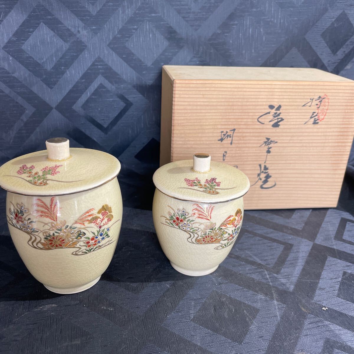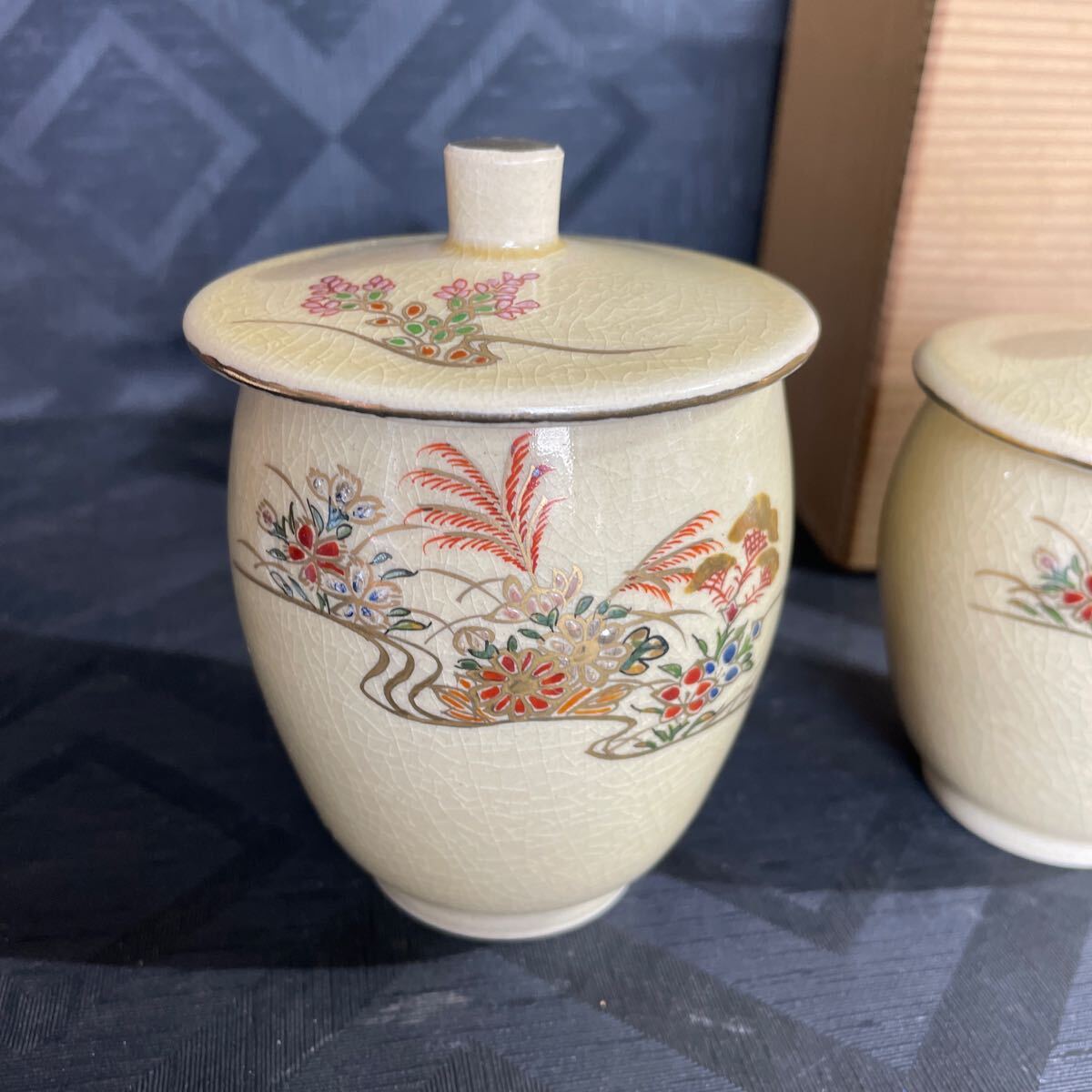 朝日堂 薩摩焼  共箱 夫婦湯飲み 湯呑み セット 蓋付き 金彩 昭和レトロ
