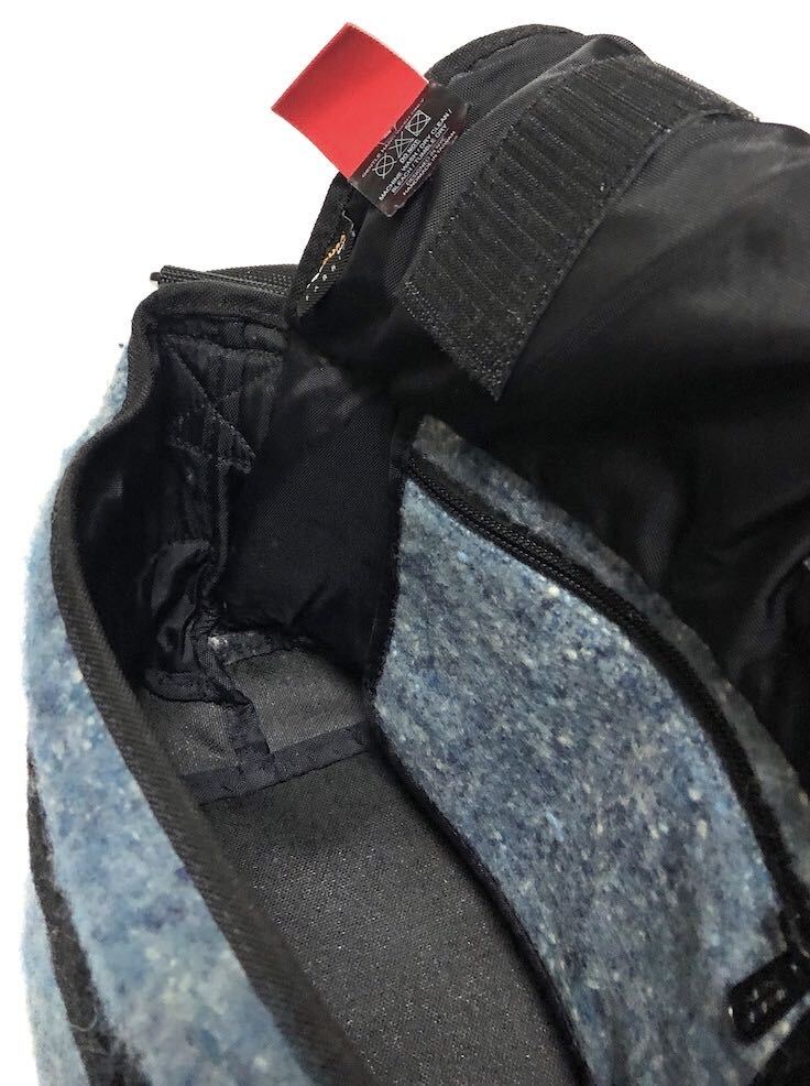 フラップ、ボディにウール生地、30周年限定タグが付きます。