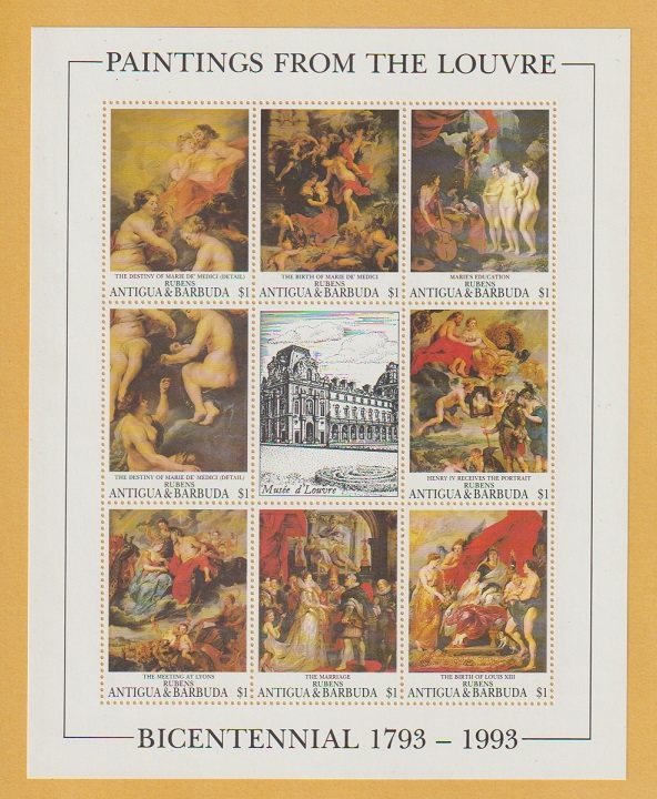 【外国切手・アンティグア・バーブーダ】 ルーブル美術館の絵画 切手シート ('04)
