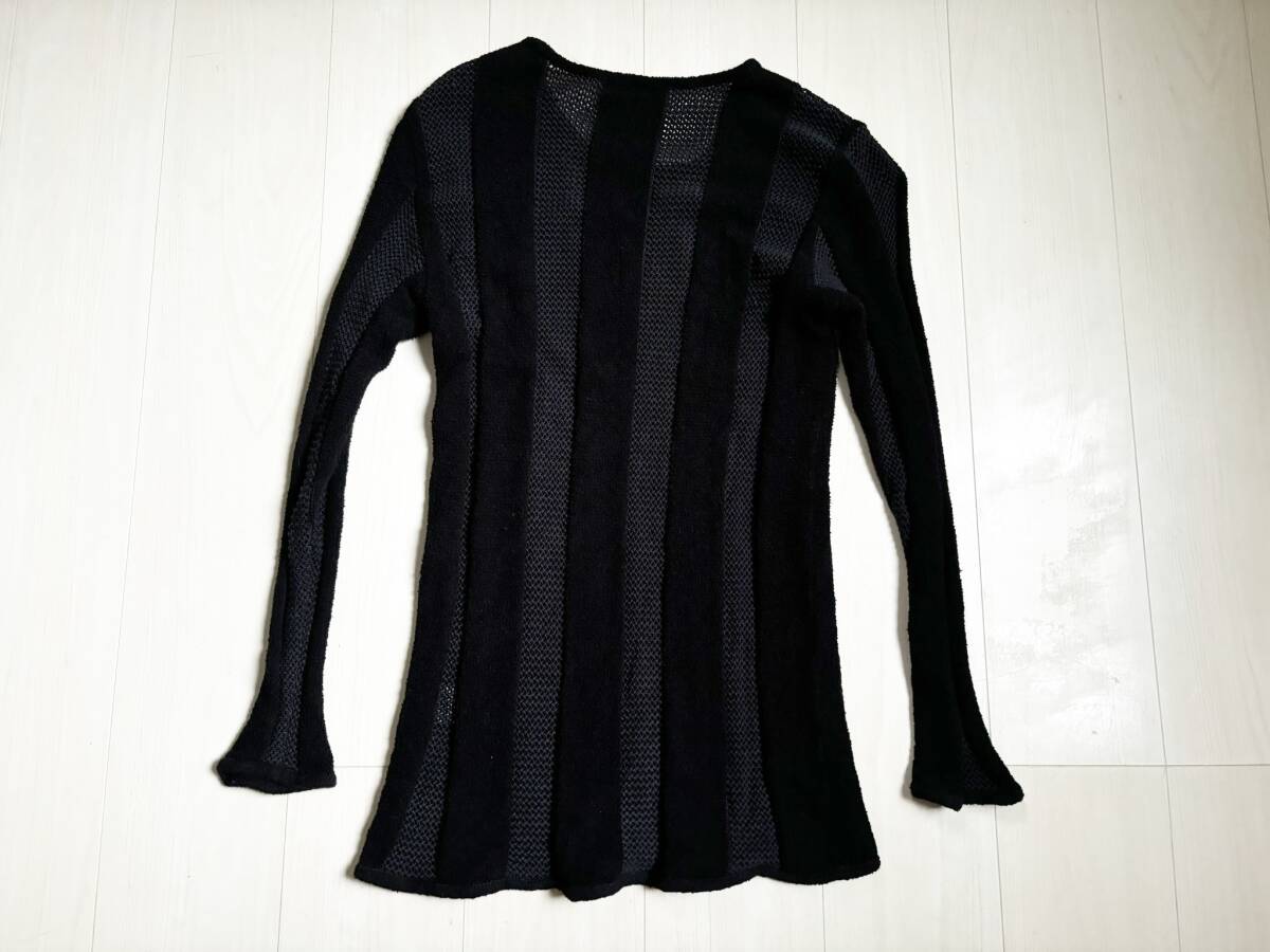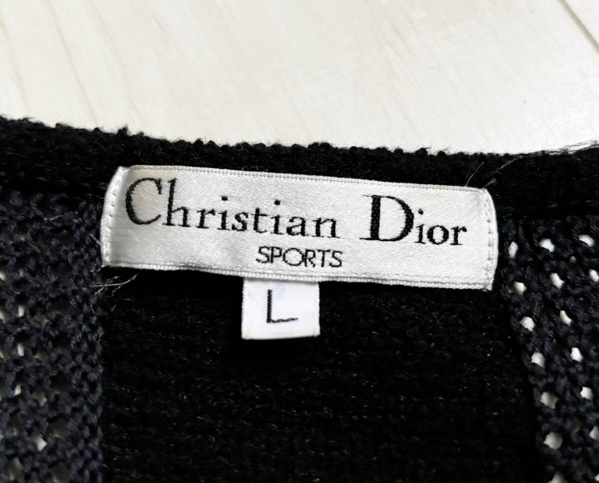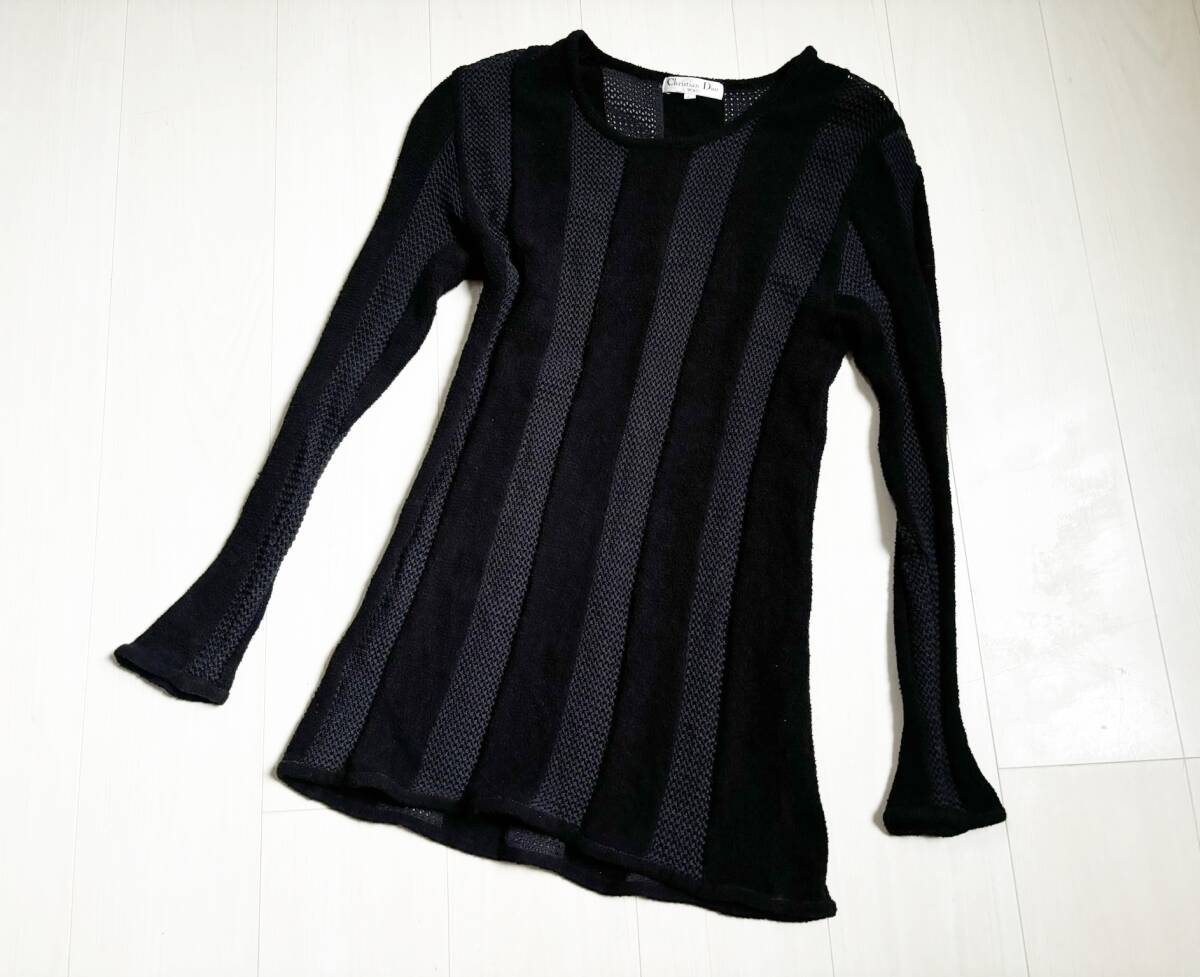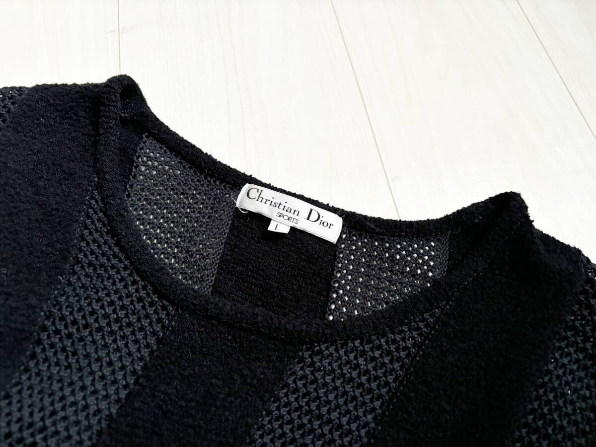 ビンテージ 美品 80’S 90’S Christian Dior クリスチャン ディオール ニット セーター 異素材切替 コットン ナイロン L 黒 紺 vintage△6