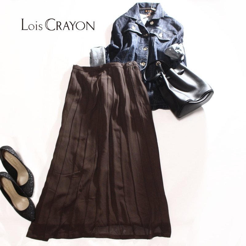 美品 ロイスクレヨン Lois CRAYON l夏 透け シフォンスカート フレアスカート ブラウン 茶色 M