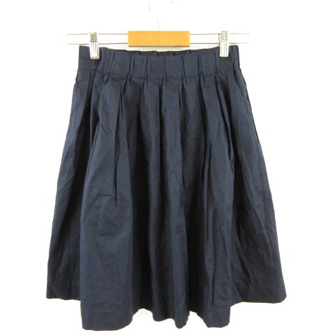 ローリーズファーム LOWRYS FARM スカート フレア ギャザー ひざ丈 紺 F *A438 レディース