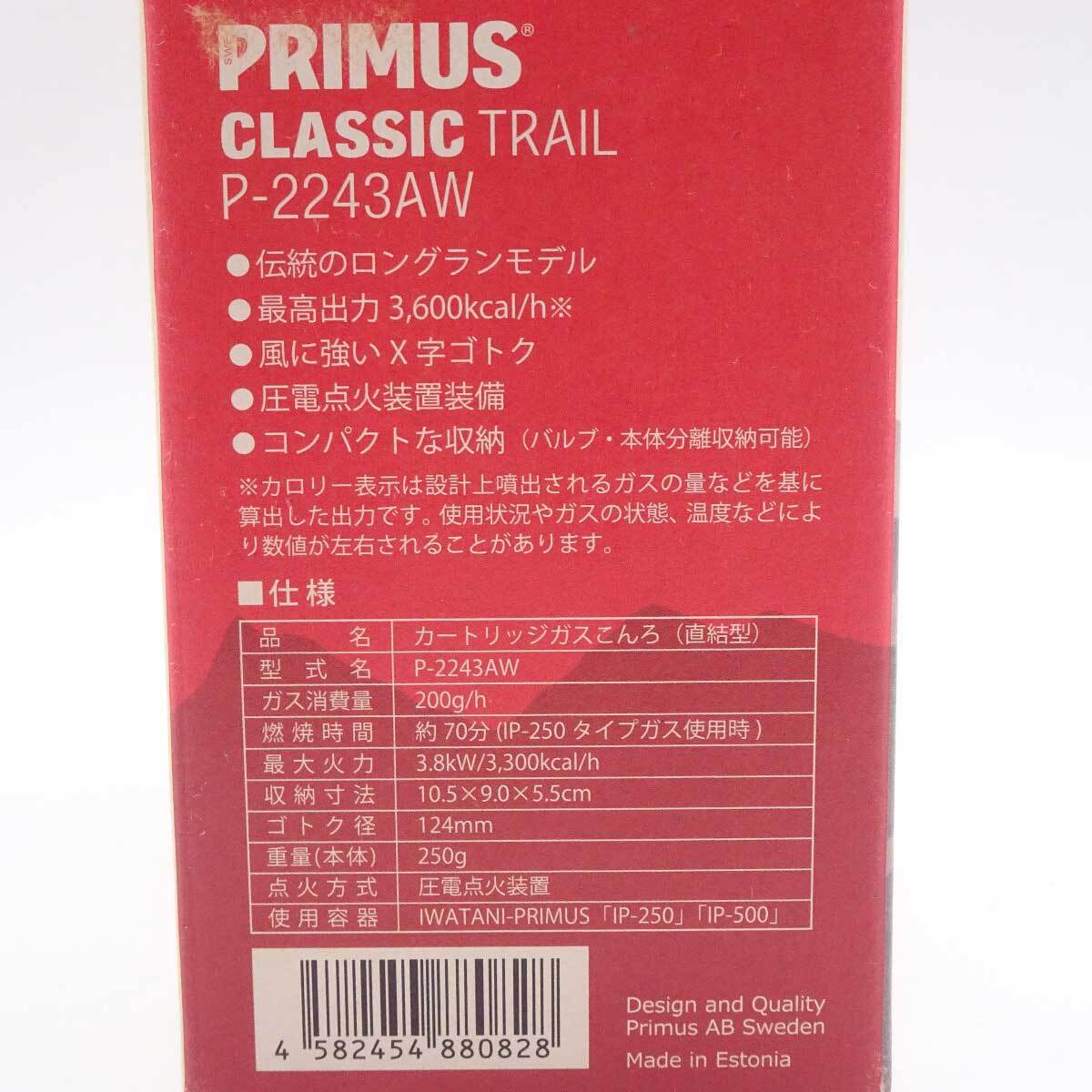 ※商品は画像にあるものがすべてとなります。 【仕様】 ブランド:プリムス タイプ:クラシックトレイル ストーブ バーナー 型番:P-2243AW 重量:250g 収納時サイズ:10.5×9.0×5.5cm ガス消費量:200g/h 出力:最大3.8kW/3300kcal/h PSマークの種類:PSLPG 届出事業者名:イワタニ・プリムス株式会社 登録検査機関:JIA 詳細備考:ゴトク径124mm |