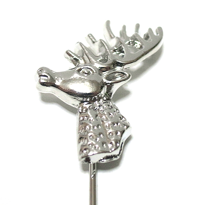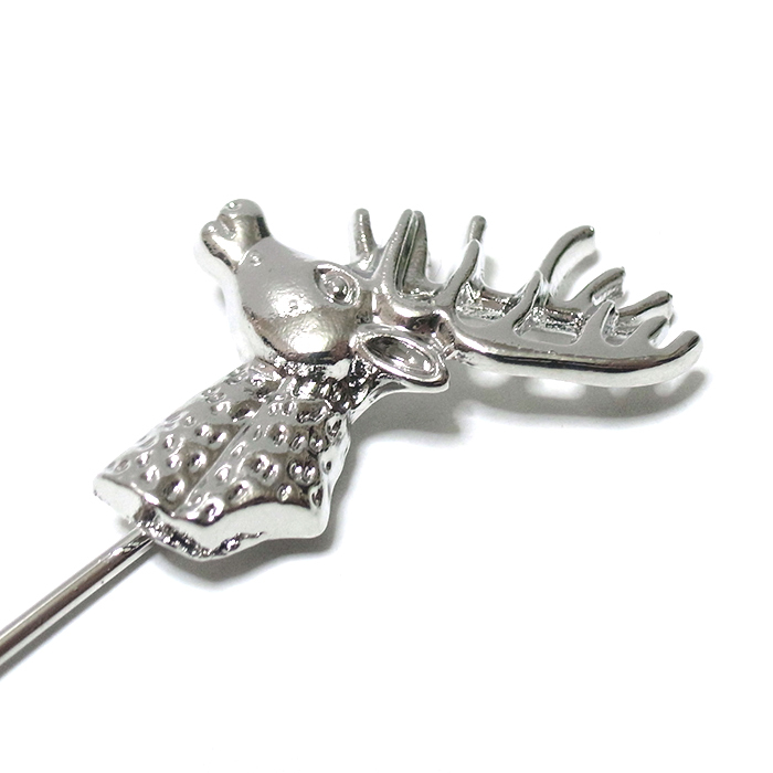 ラペルピン★スティック 鹿 シカ 枝角 動物 シルバー pin-1508