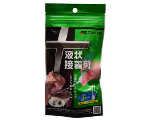 水槽の石組みレイアウトを作る際に、「補助材」と合わせて使用することで、凹凸があって接着面積が小さい素材同士をしっかりと接着することができる液状の接着剤です。