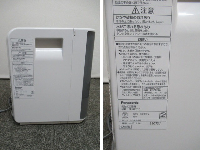 【中古】Panasonic 気化式加湿器 FE-KFE10 大容量9L ヒートレスファン方式 静音 省エネ 17〜28畳対応 2012年製【2】