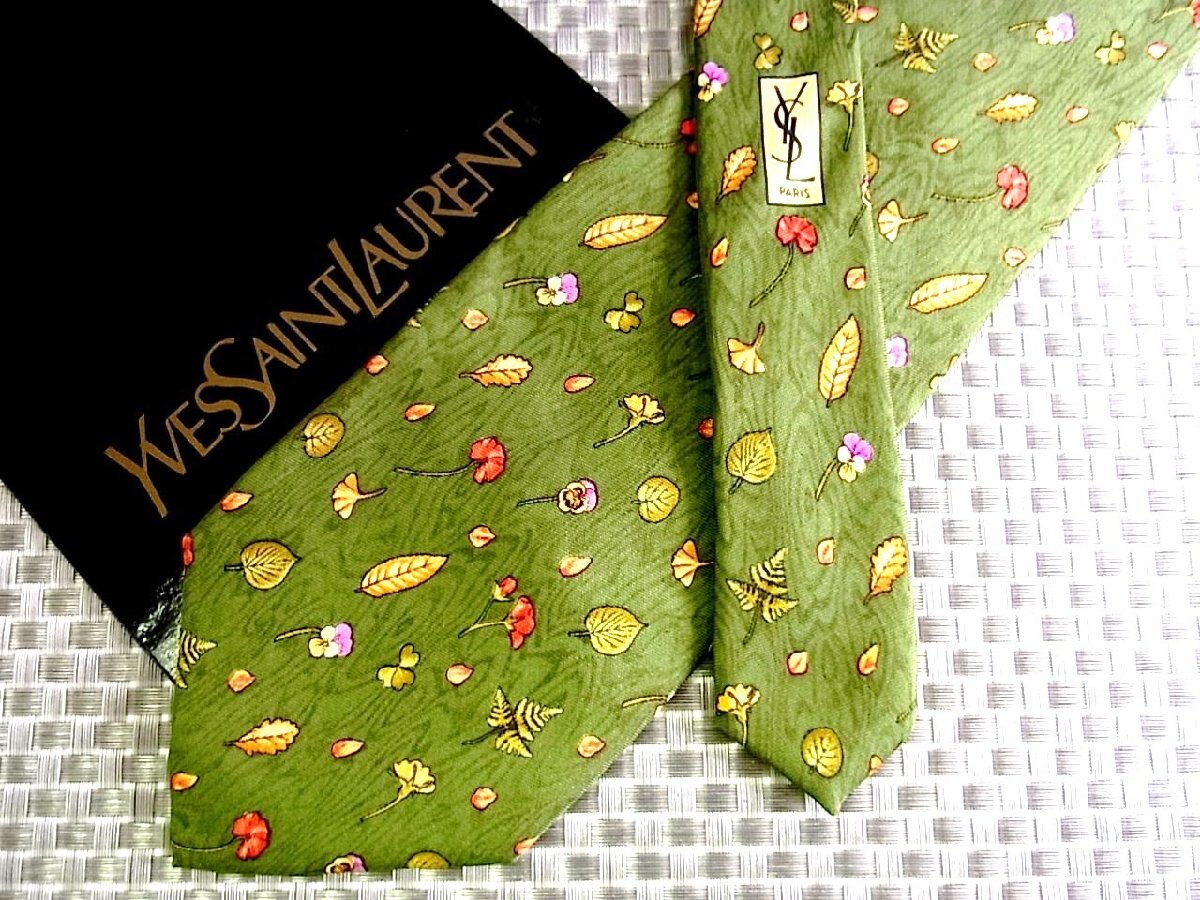【在庫処分セール】●特売●FK7954●サンローラン【花 葉っぱ 植物 柄】ネクタイ●