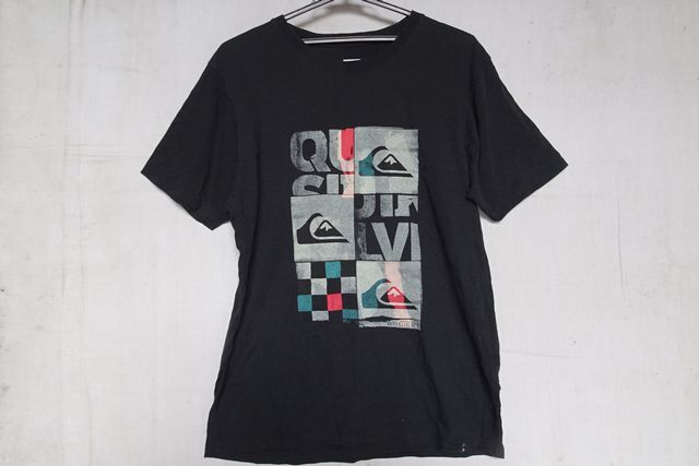 QUICKSILVER/半袖Tシャツ/フロントプリント/ロゴプリント/カジュアル/黒/ブラック/XLサイズ(7/2R)