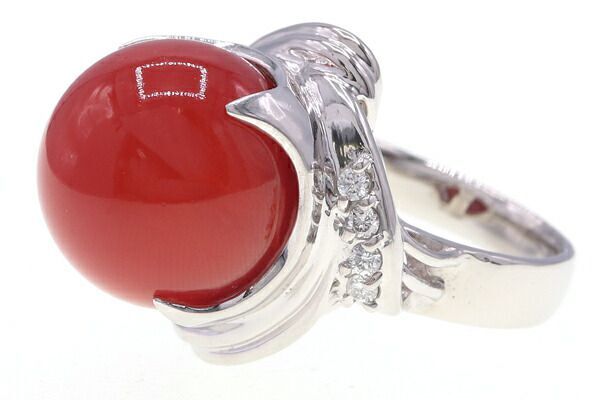 状態 | 【商品状態】 金属部分に微細なキズ・薄スレがありますが、目につくものではありません。 【石の評価】 サンゴはやや濃い目の朱色で、真円に見えます。リングに接地しているフチに所々白っぽく色抜けしています。脇石のダイヤモンドはおおよそSIクラスです。 ※海外発送は出来かねます。 |