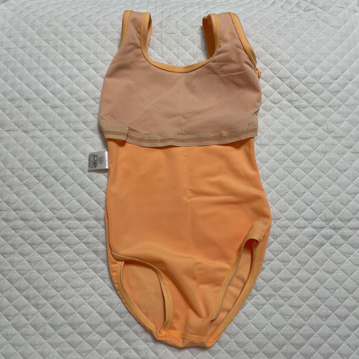 新品 レオタード 130 コスモスオレンジ 未使用 日本製 ジュニア バレエ 新体操 器械体操 ダンス レッスンウエア テクノファイン フレシール