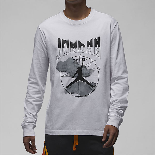 新品 NIKE JORDAN L/S T-SHIRT ナイキ ジョーダン 長袖 Tシャツ ホワイト コットン ジャンプマン スウッシュ スポーツ DRY-FIT M 正規