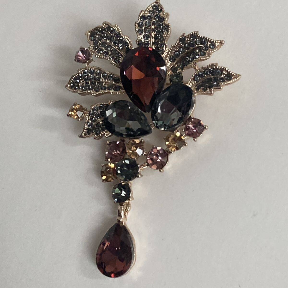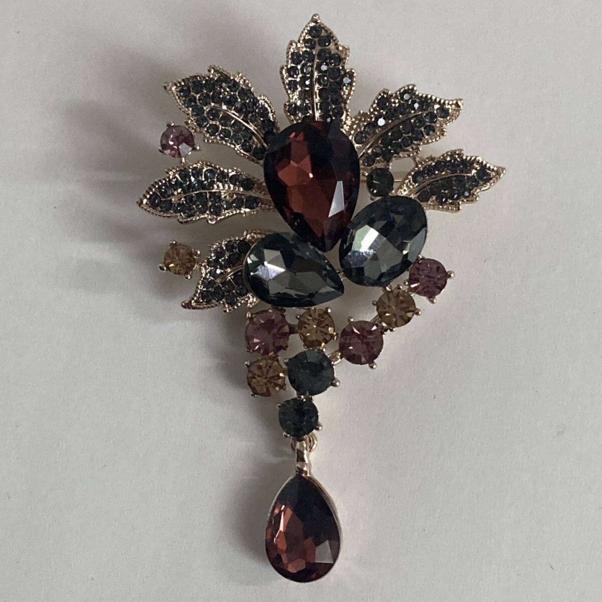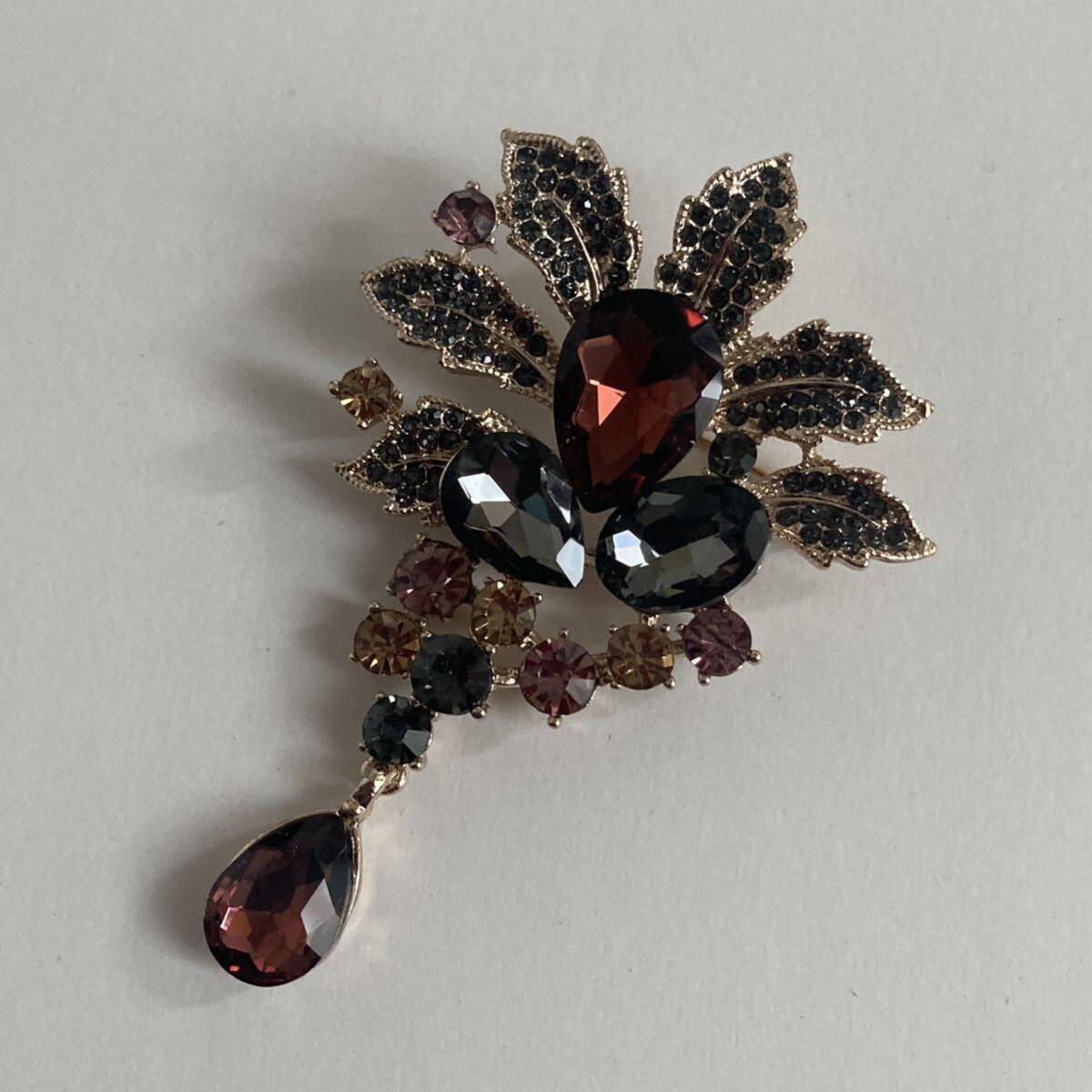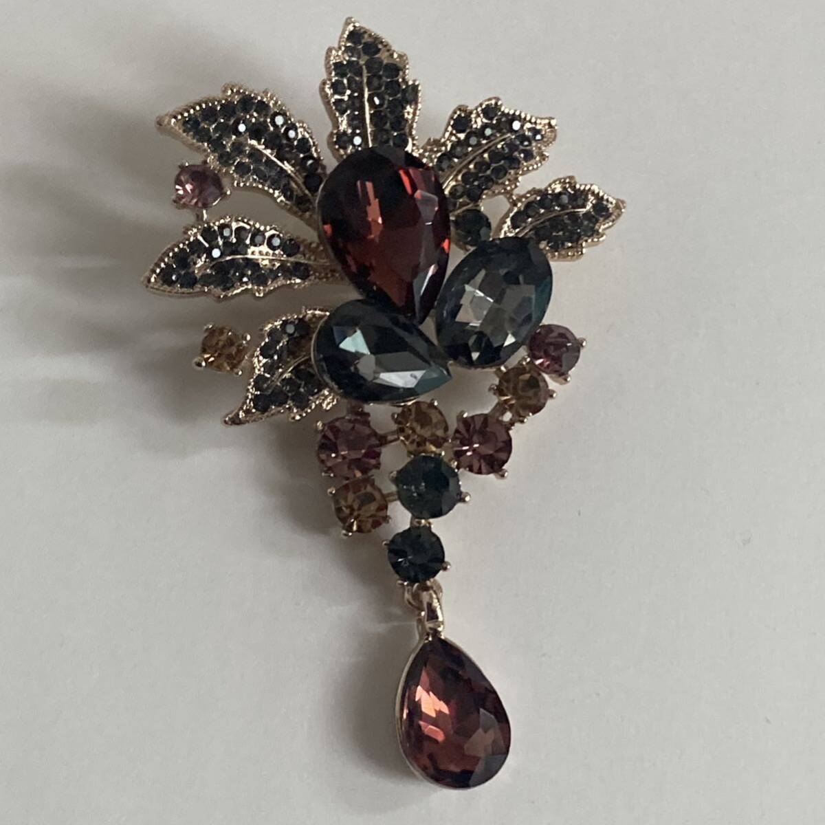 新品送料無料 ヴィンテージ風のおしゃれなデザイン ブラウン ブローチ アンティーク カラー ラインストーン 中世ヨーロッパ風 海外 花
