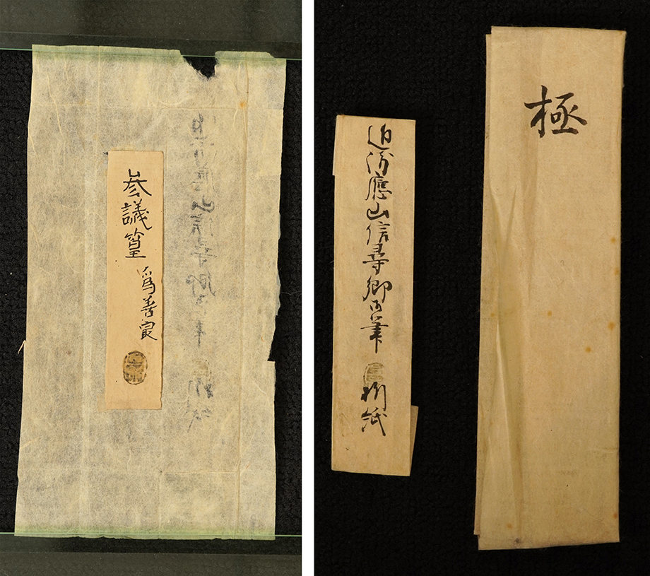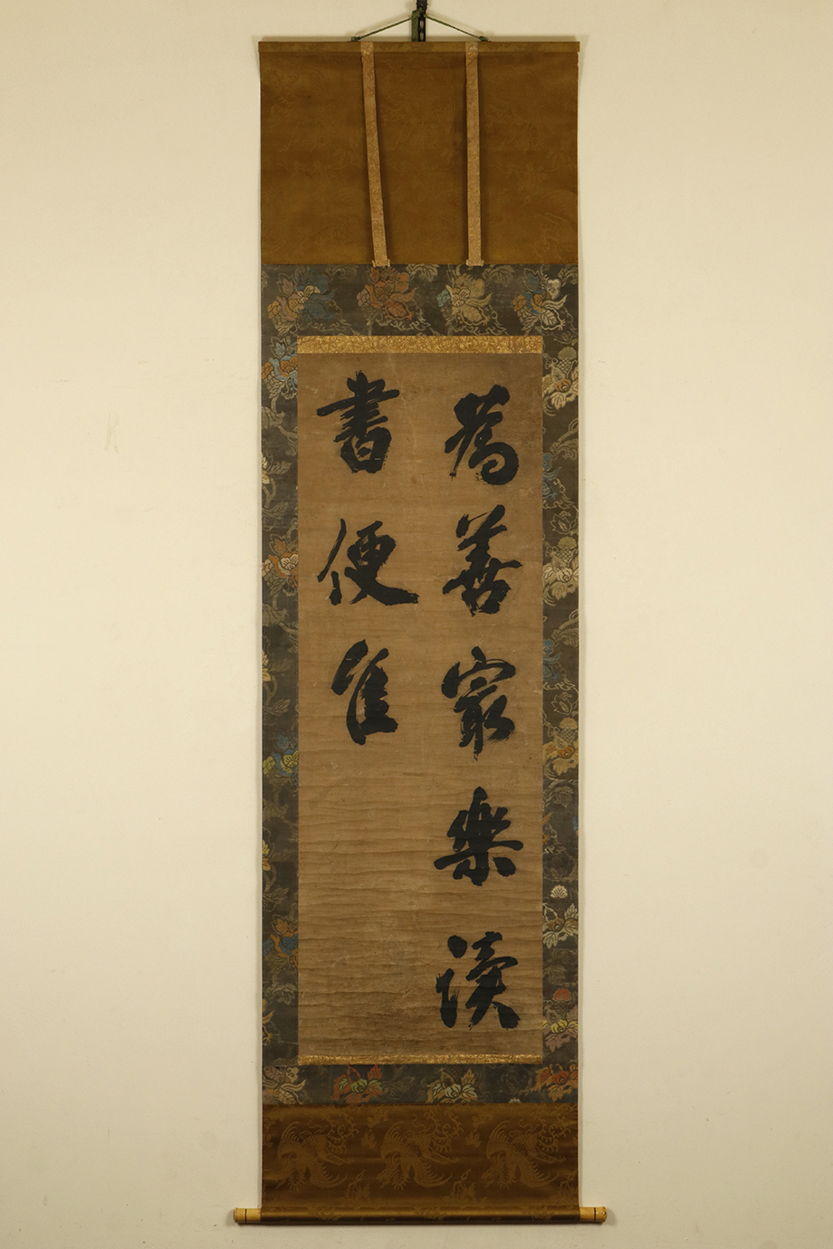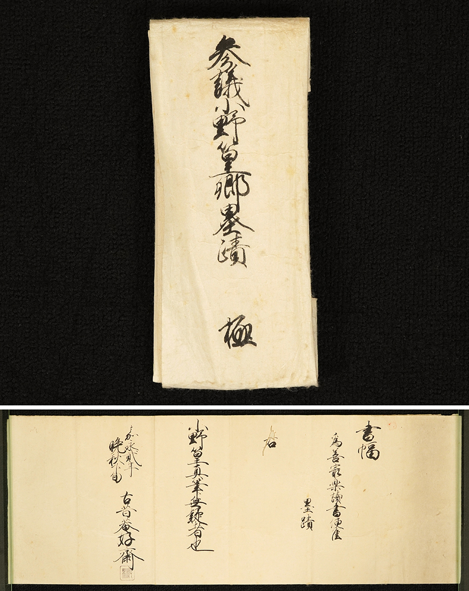 総丈サイズ…横 60 × 縦 223 cm 紙本・漆塗箱 二重箱入 近衛信尋並川勝宗久極 大倉好斎折紙 烏丸光広並伊藤東涯手紙 三条西家旧蔵 状態…ヤケ・オレ・傷ミ 【印刷ではありません】 【模写】 小野篁 平安前期の漢学者、歌人。『令義解』の編纂に携わる。遣唐副使となったが大使と争って行かず、隠岐に流罪となるが、後許されて参議となる。詩文は経国集・和漢朗詠集・扶桑集に、和歌は古今集などに収載。最終官位は参議左大弁従三位。仁寿2年(852年)歿、51歳。 近衛信尋 江戸前期の公卿。幼称は二宮。法号は応山。後陽成天皇の第四皇子、三藐院近衛信尹の養子。従一位関白。茶の湯を古田織部に学び、沢庵宗彭らと交遊があった。和歌に極めて優れ、画も能くし、書においては養父信尹の三藐院流を継承する能書家であった。実兄にあたる後水尾天皇を中心とする宮廷文化の発展に大いに貢献した。慶安2年(1649)歿、51歳。 川勝宗久 江戸時代中期の古筆鑑定家。古筆了珉門人。川勝家初代。生没年未詳。 大倉好斎 江戸後期の古筆鑑定家。京都生。大倉汲水の長男。姓は菅原、名は信古、号に古昔園。紀州徳川家に仕えた。嘉永4年(1851)法橋に叙せられる。文久2年(1863)歿、68歳。 烏丸光広 江戸前期の公卿、歌人。烏丸光宣の子。慶長11年参議となる。14年女官との遊興事件に連座して官職をうばわれたが翌々年旧に復した。のち正二位、権大納言。和歌を細川幽斎にまなんで二条派歌人として活躍。書家としても知られる。書は上代様を基礎とし、本阿弥光悦の影響を受け、全体の流れの美に重点を置く。歌集に「黄葉和歌集」。古筆の鑑識にも長けており、古筆鑑定を業とした古筆家の初代・古筆了佐は光広から古筆の鑑定も学んだ。寛永15年(1638)歿、60歳。 伊藤東涯 江戸中期の儒者。京都生。名は長胤。字は原蔵、源蔵、元蔵。号に東涯、慥々齋。諡号紹述先生。伊藤仁斎の長子。父に儒学を学び、その古義学を受継いで堀川学派を充実させた。父の遺した著書の編集・刊行に努め、さらに語学・史学・考証学・博物学などの分野にも通じて多くの門人を教えた。異母弟に同じく儒学者の伊藤介亭がいる。新井白石・荻生徂徠らと親交を深くした。著書に『制度通』『古今学変』『弁疑録』など。元文元年(1736)歿、67歳。 |