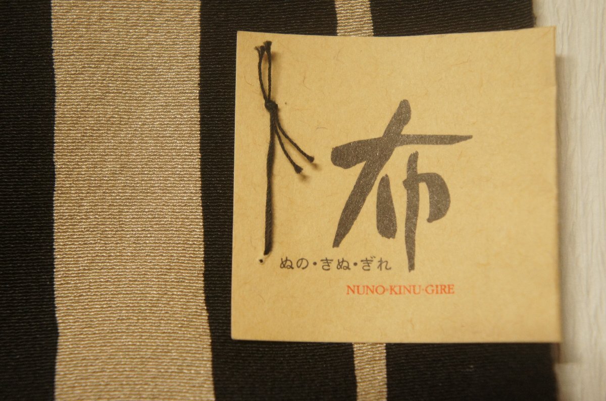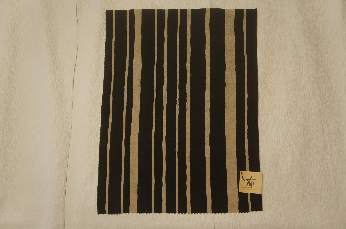 柄附正絹縮緬黒色地ベージュ色縞模様