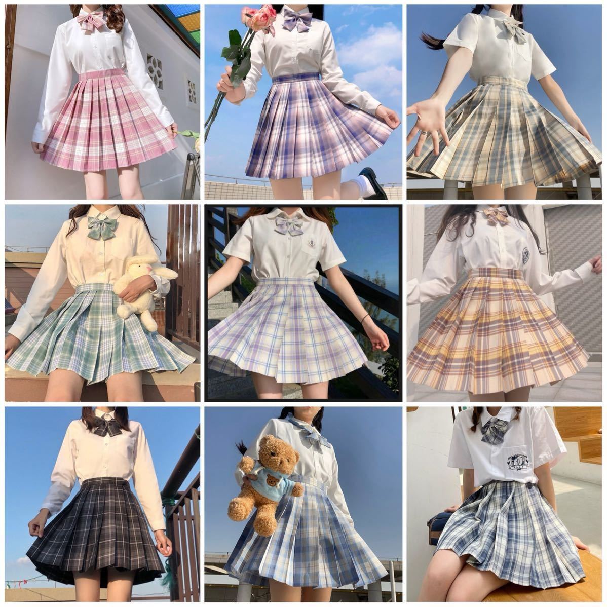 JKファッション JKコーデ JK 学生 女子学生 高校生 制服 プリーツスカート チェック柄 レディース レールアジャスター付き