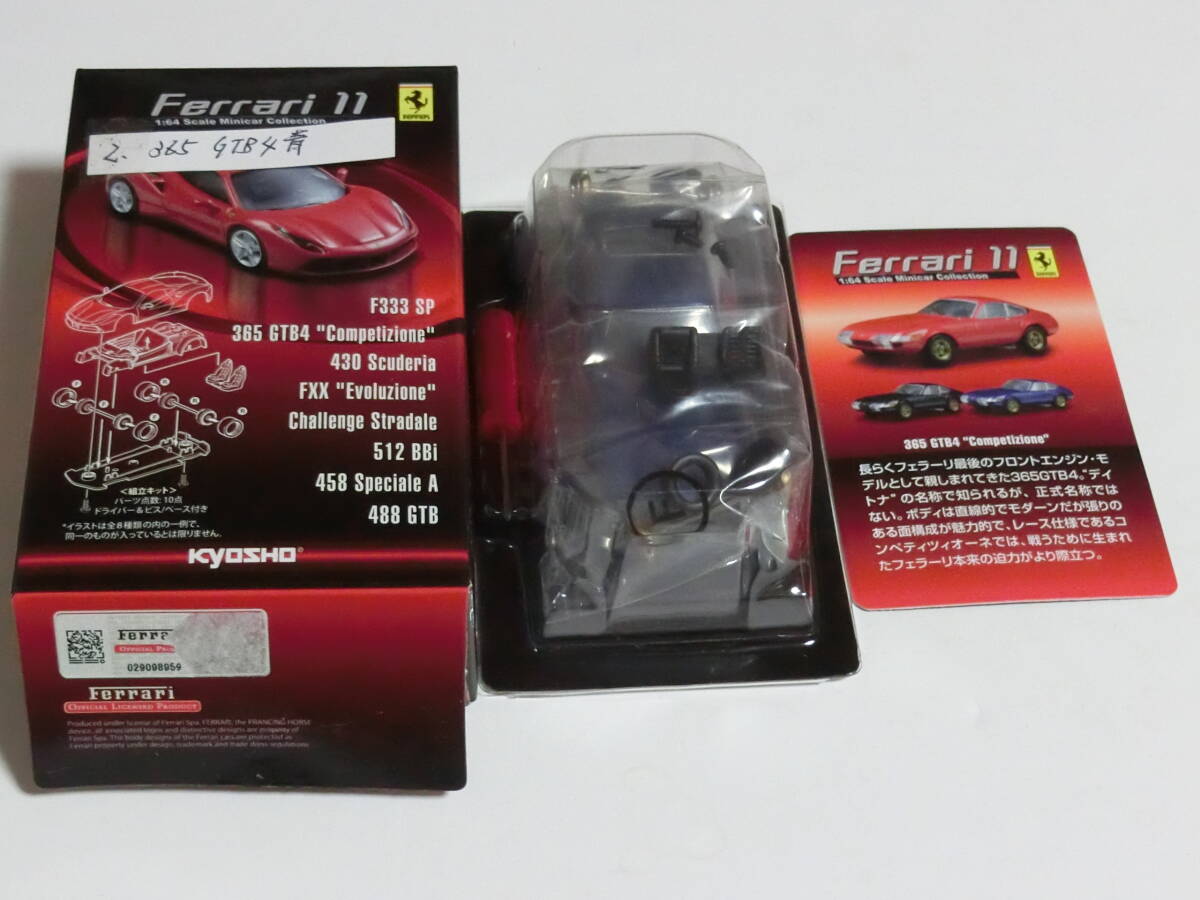 京商 フェラーリ ミニカー シリーズ 11/2.365 GTB4 "Competizione" 青。1/64,外箱開封済、カード解説書あり。落札後はノークレーム・ノーリターンでお願いします。発送は定形外規格外郵便もしくはゆうパックで対応させて戴きます。