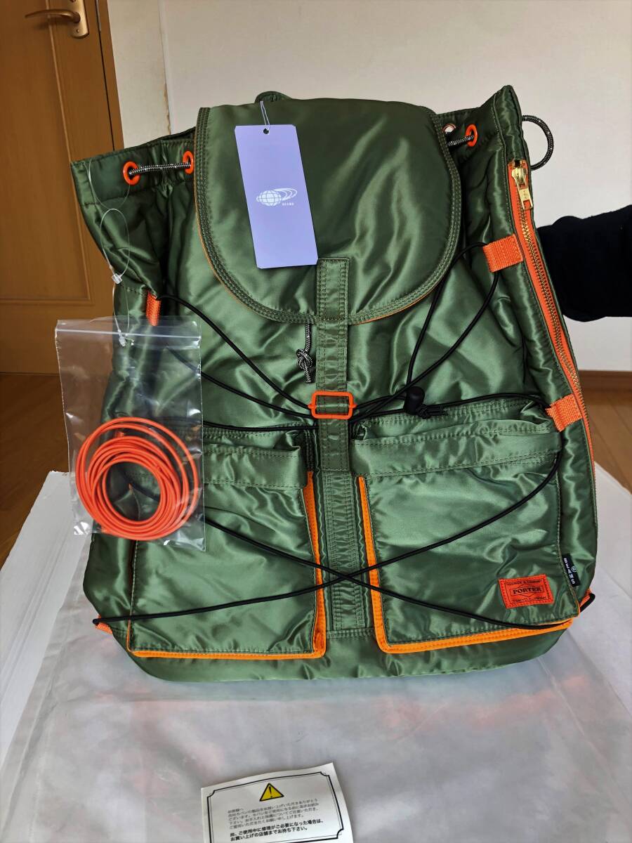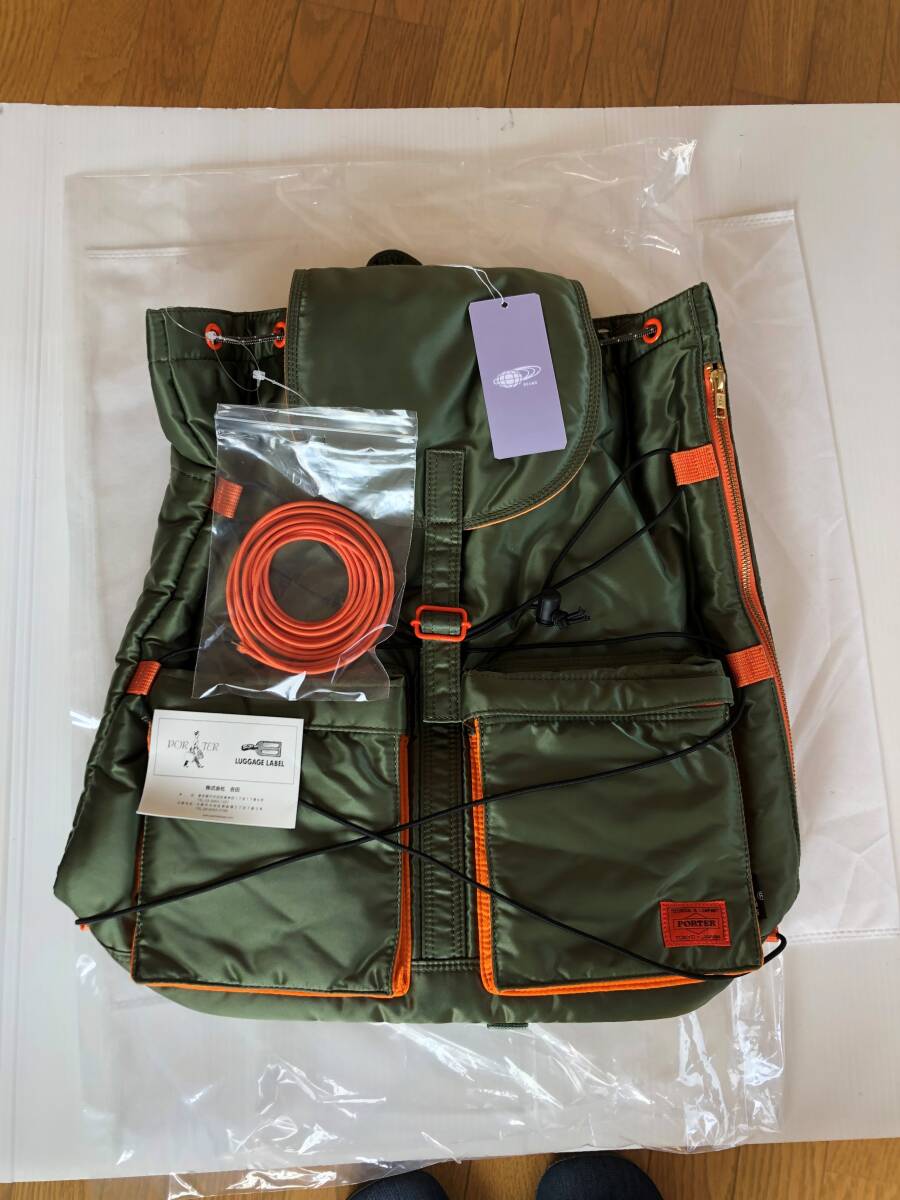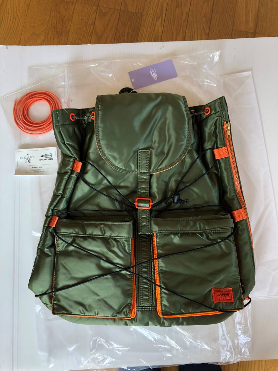 ポーター 35周年 ビームス リュック タンカー グリーン 緑 カーキン旅行 ジム ストレッチコード 限定 PC 収納 オレンジ ipad mini 新品