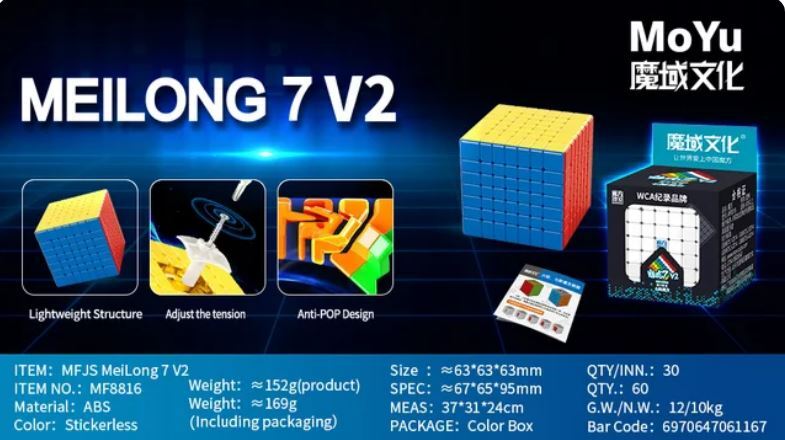 【meilong 7 v2】Meilongマジックスピードキューブ、スティックレスプロのそわそわおもちゃ、マジックパズル、7x7x7 v2