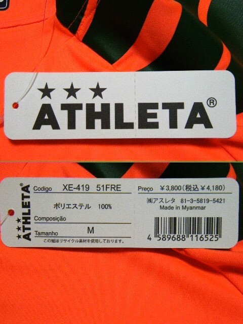 アスレタ ATHLETA COLD TOUCH サッカー用高機能プラクティスTシャツ 橙系 サイズ M 吸水速乾/接触冷感/ストレッチ機能 定価 4,180円