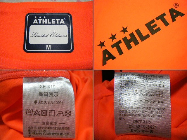 本体は軽量ポリエステル素材。     通気・涼感性のあるソフトなストレッチ生地で、吸水速乾機能と接触冷感(COLD TOUCH)機能を施したサッカー用高機能トレーニングシャツ・プラクティスシャツ。     脇下部分はより通気性のあるメッシュ素材使用と動きやすさを追求した縫製加工。      胸のロゴ文字、背中と左肩のロゴマーク等は樹脂貼り付け。    “ ATHLETA LIMITED EDITION ”     モデル名   切り替え プラシャツ      カラー フラッシュオレンジ系