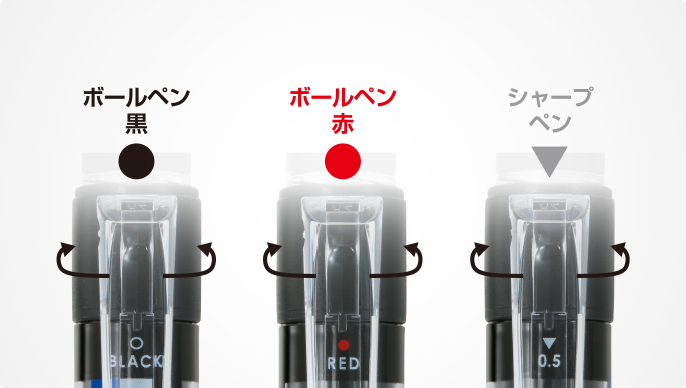 ・クリップ部分を回して、出したいペンのアイコンに合わせて機能を選択してください。